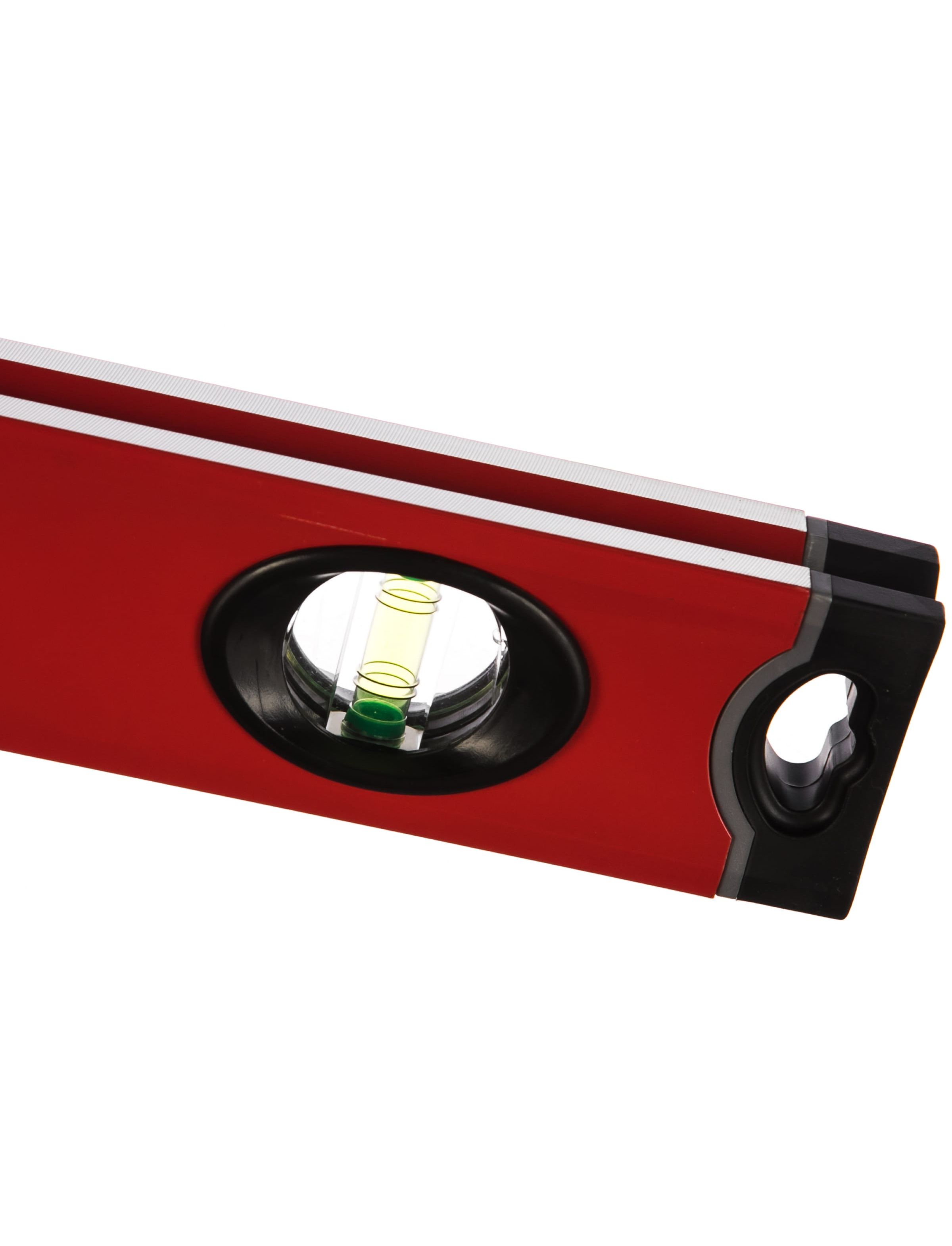 Алюминиевый уровень 1000 мм MATRIX PROFI 34308 имеет усиленный корпус с двумя фрезерованными поверхностями. Благодаря специальной форме этих поверхностей уровнем можно пользоваться для измерения труб. Инструмент надежен и практичен в работе, он прослужит долгое время. Изделие удобно удерживать при измерении вертикальных поверхностей, так как на его корпусе располагаются две эргономичные рукояти.