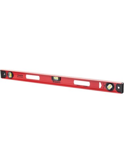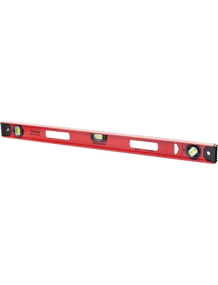 Усиленный алюминиевый уровень Matrix «Рельс» 34010 длиной 1000 мм снабжен 3 глазками для проверки поверхностей относительно горизонтальной и вертикальной плоскостей. Поворотный глазок уровня позволяет выстроить угол 45 градусов. Инструмент поможет выдержать все плоскости идеально ровными, поэтому пригодится строителям, отделочникам, бетонщикам и другим специалистам.