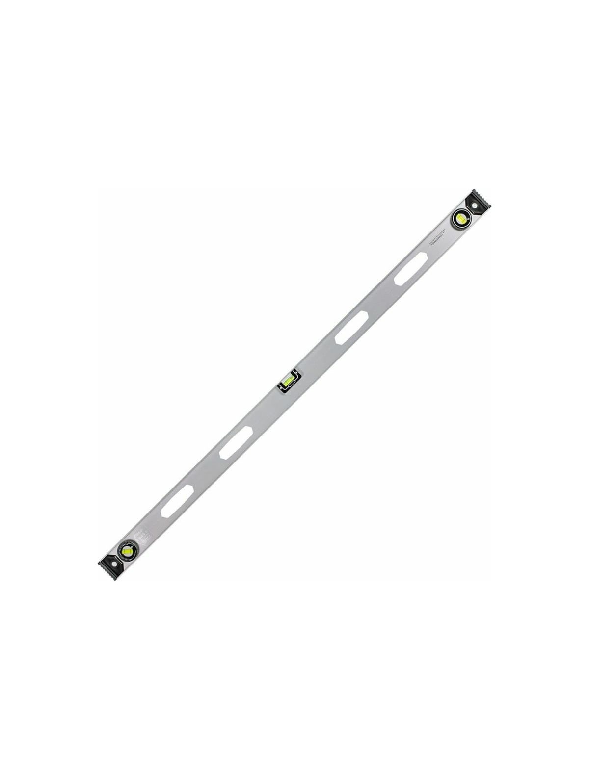 Алюминиевый уровень MTX Рельс 2000 мм, 3 глазка, 1 поворотный 340419 имеет 3 глазка: 2 для проверки отклонений от заданной вертикали и горизонтали и 1 поворотный для проверки наклонных поверхностей. Для определения отклонения вертикали 90 градусов необходимо использовать пузырьковую ампулу только в верхнем положении уровня. Модель выполнена из качественного и прочного алюминиевого сплава. Пластиковые заглушки по бокам корпуса повышают его ударопрочность и предотвращают попадание мусора.