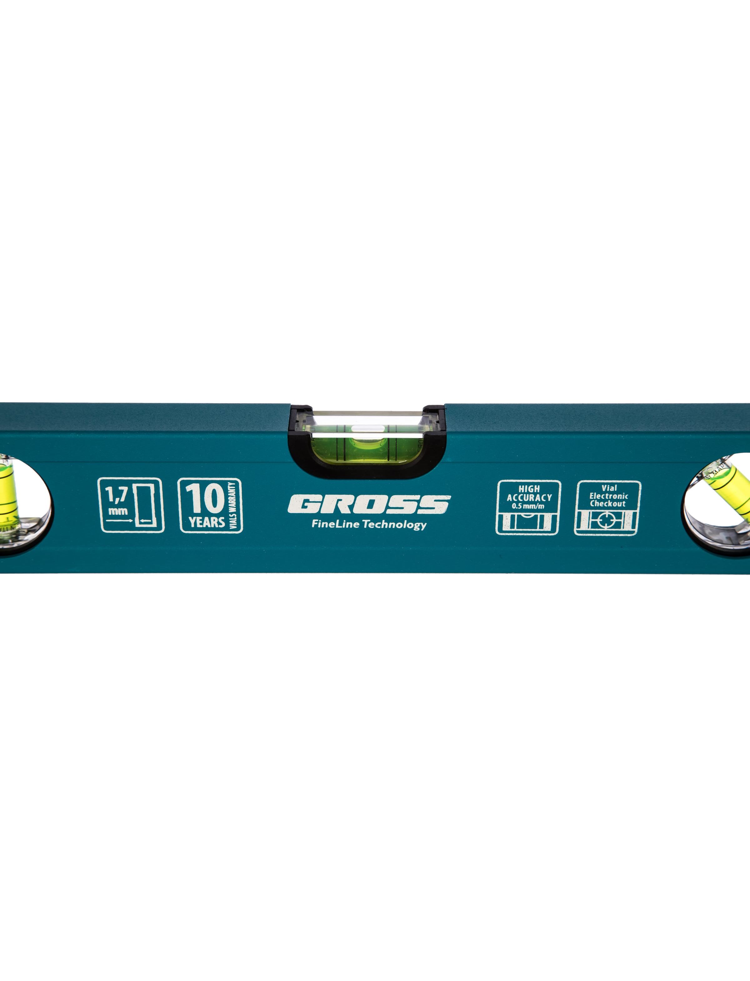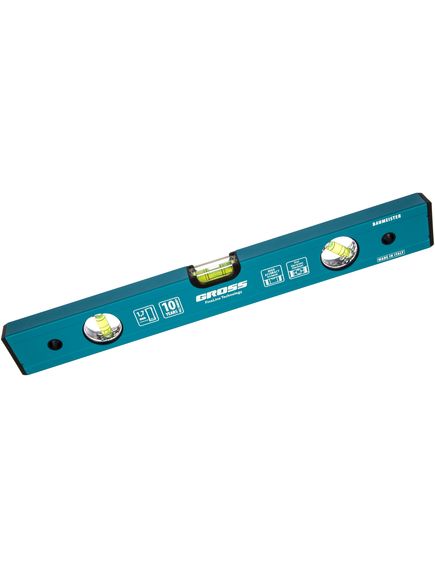 Алюминиевый усиленный уровень 400 мм, толщина профиля 2 мм, 3 глазка GROSS 33624 представляет собой удобный инструмент для эффективной и качественной укладки строительных блоков. Акриловые колбы имеют высокую прочность. Профиль защищен от торцевых ударов заглушками.