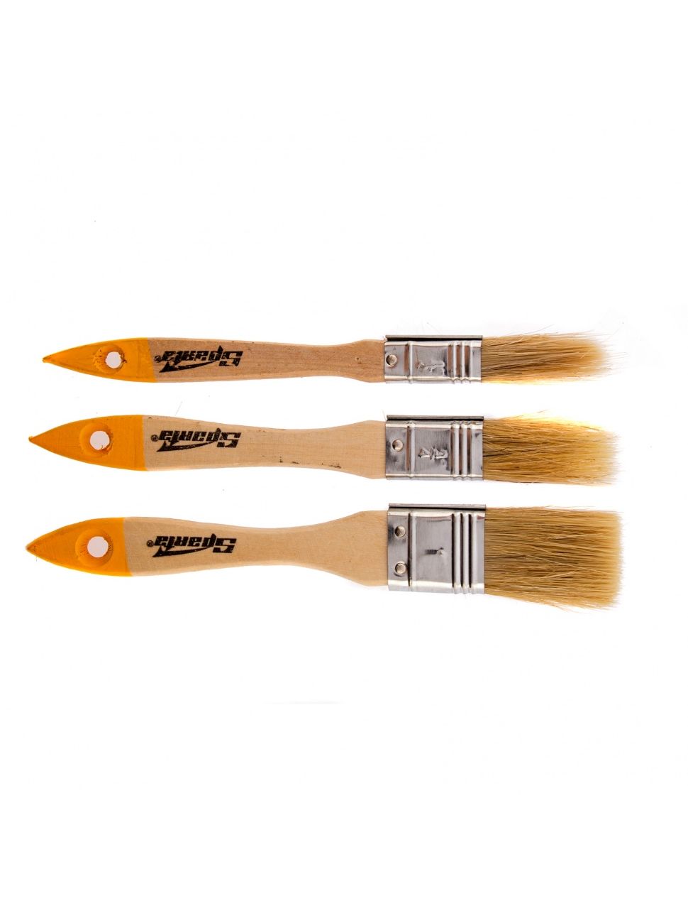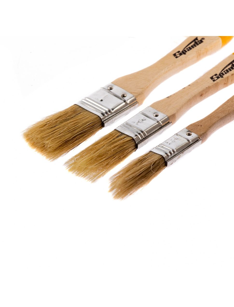 Набор плоских кистей 3 шт SPARTA 841115 предназначен для малярных работ, подходят для нанесения лаков и масляных красок. Данные кисти изготовлены из натуральной светлой щетины. Ручка выполнена из дерева.