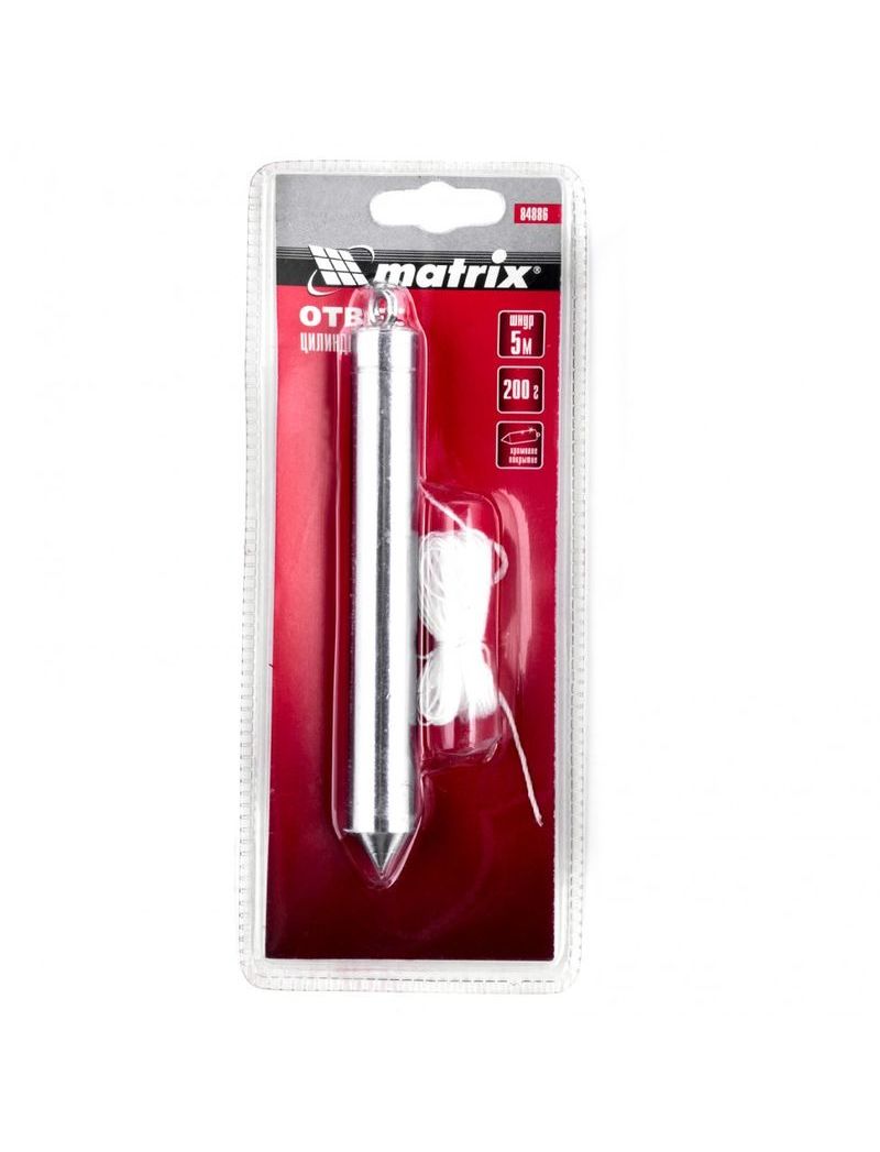 Отвес цилиндрический 200 г шнур 5 м MATRIX 84886