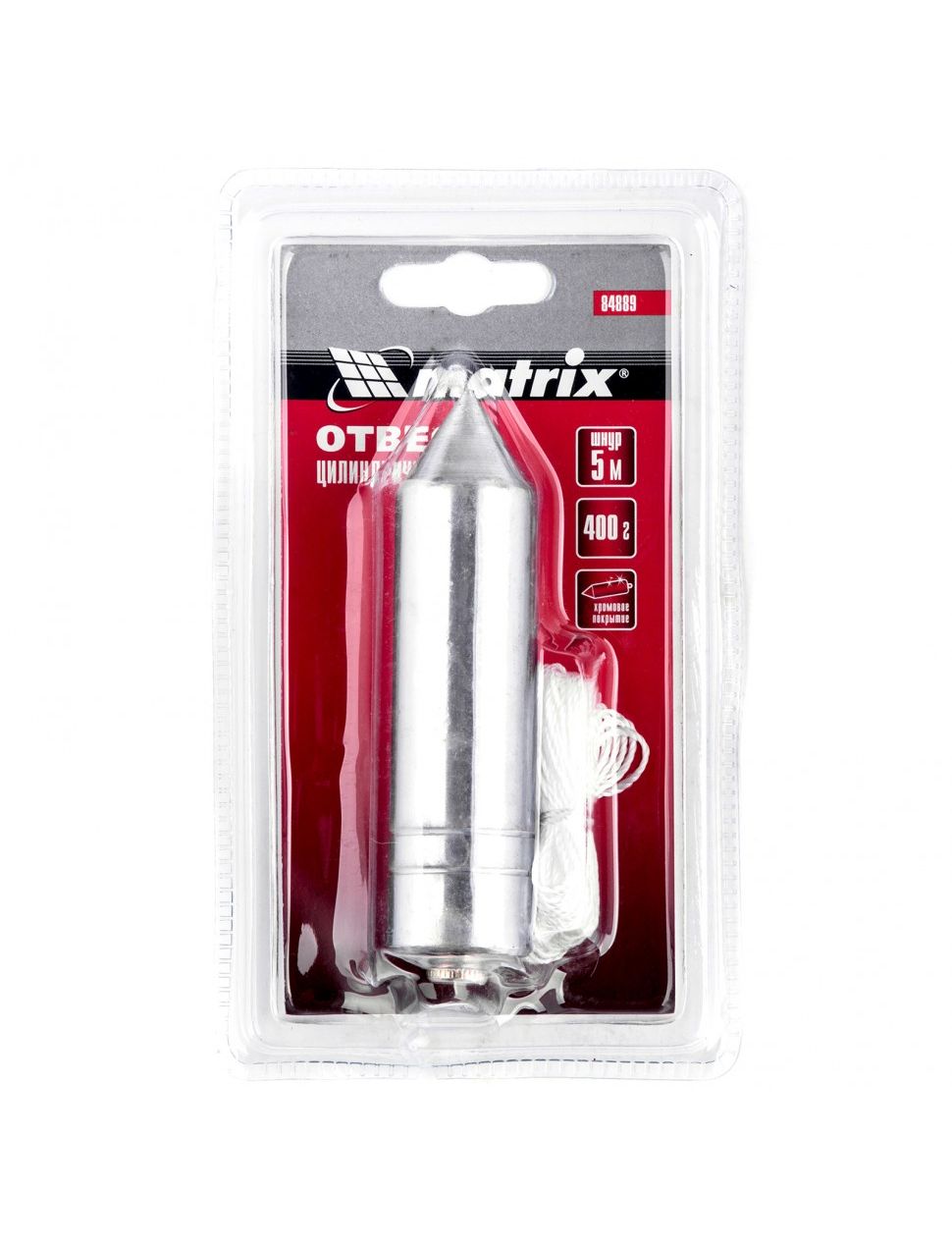 Отвес цилиндрический 400 г шнур 5 м MATRIX 84889