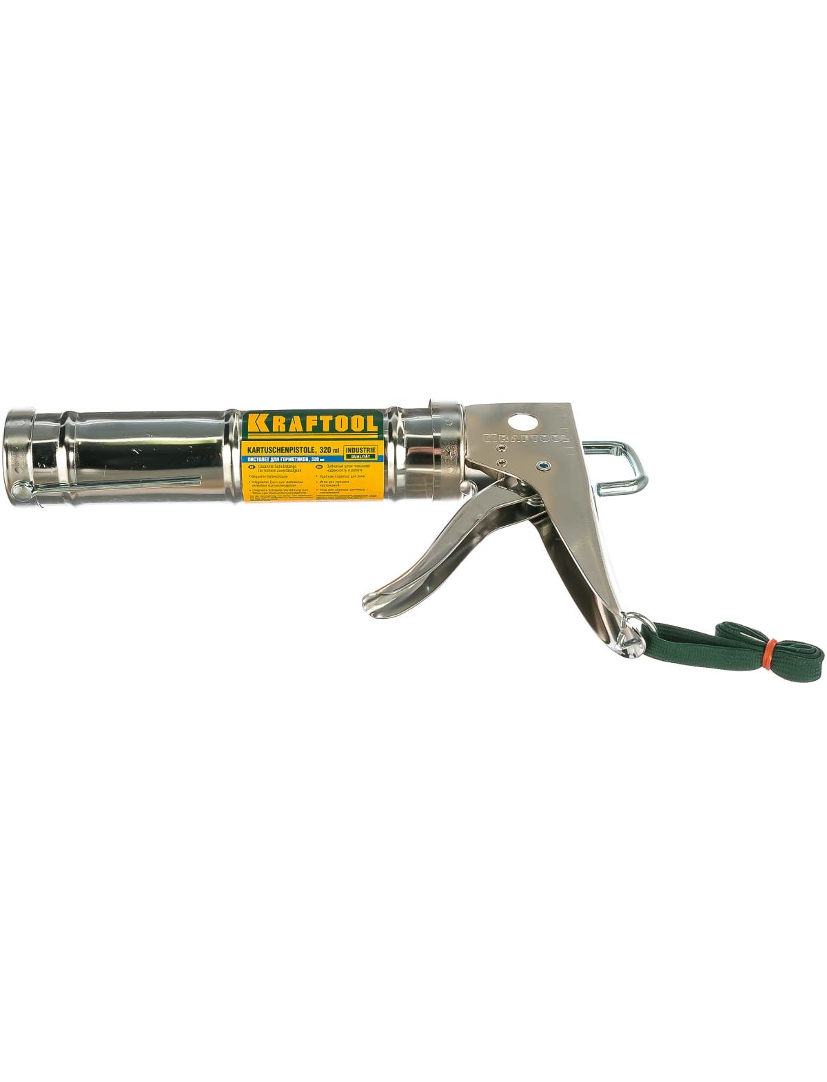 Пистолет для герметиков KRAFTOOL INDUSTRIAL 06671_z01 надежен и удобен в применении. Используется при отделочных, ремонтных и монтажных работах для герметизации открытых полостей, щелей и швов. Пистолет совместим с тубами объемом 320 мл. Корпус из хромированной стали устойчив к коррозии и механическим повреждениям. На курке предусмотрена защита для пальца.