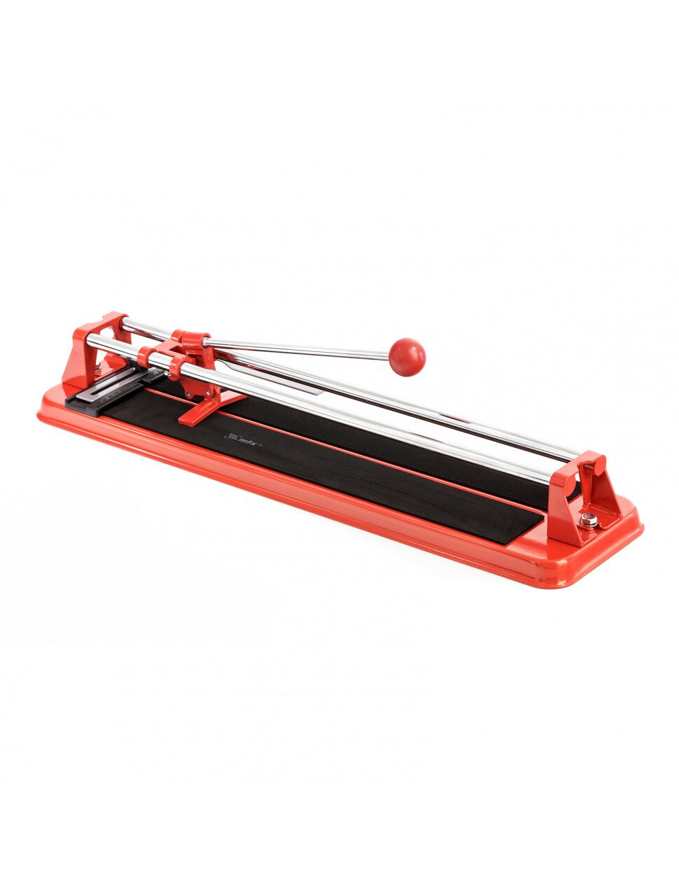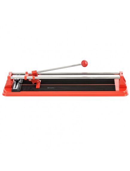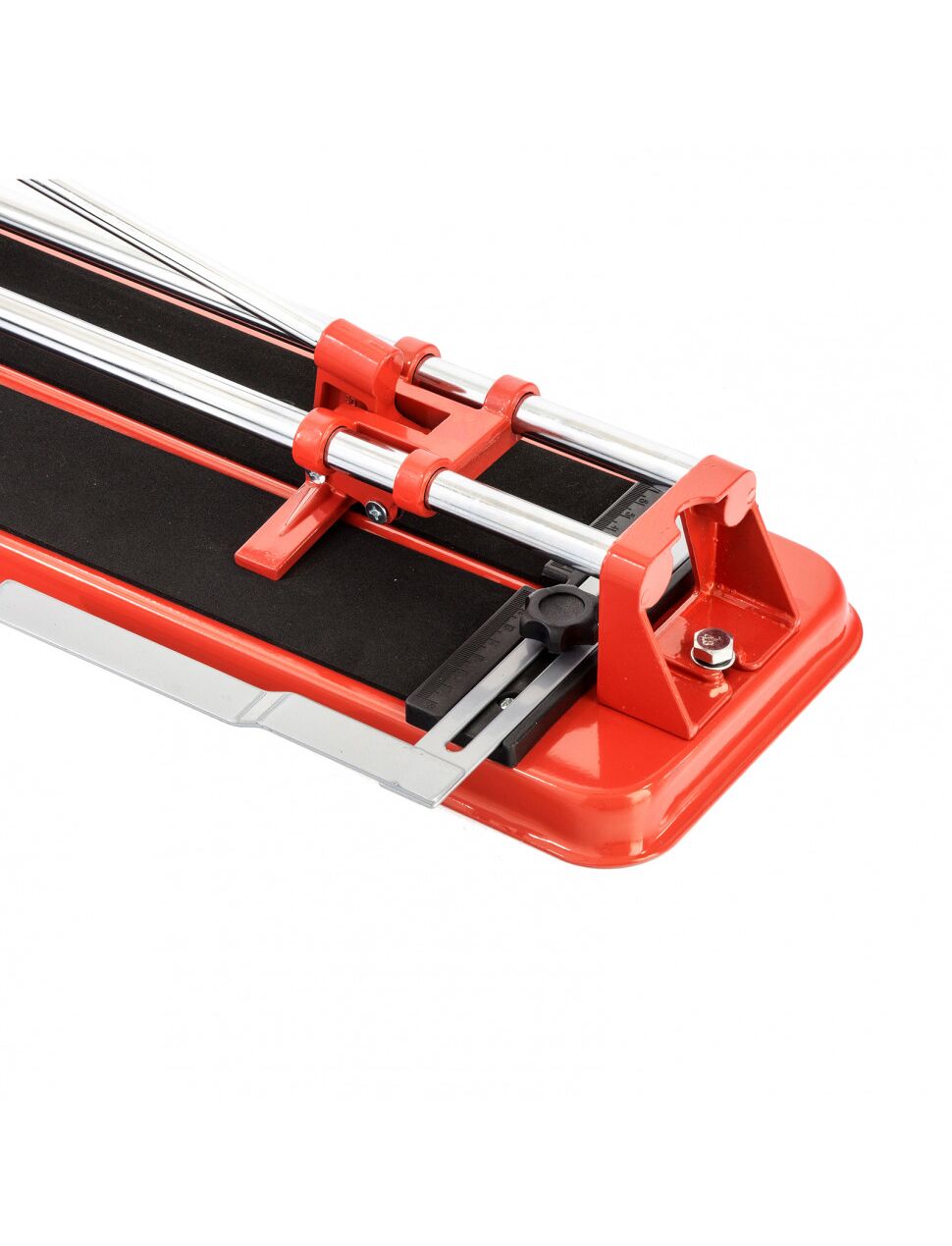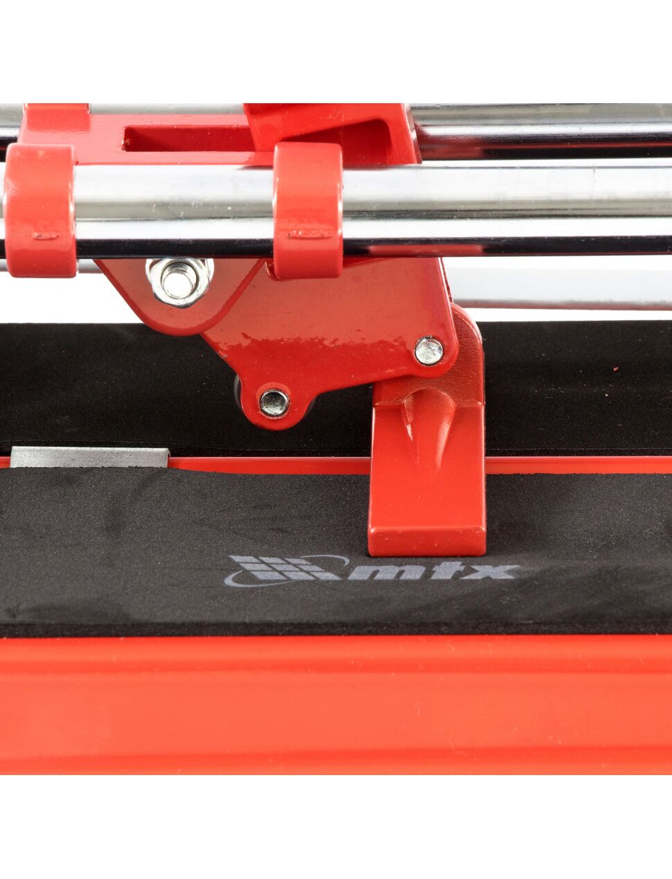 Плиткорез MTX 500x14 мм 87622 используется в ремонтных работах для резки керамической кафельной плитки толщиной до 14 мм и длинной до 500 мм. Направляющие изготовлены из высококачественной прочной стали с покрытием от коррозии. Режущим элементом выступает специальный ролик, в составе которого твердый сплав ВК-8. Модель оснащена угольником из металла для регулировки размера и дополнительной фиксации при отрезании заготовки.