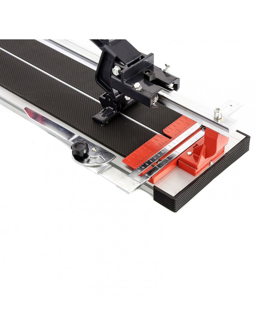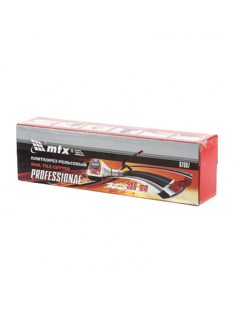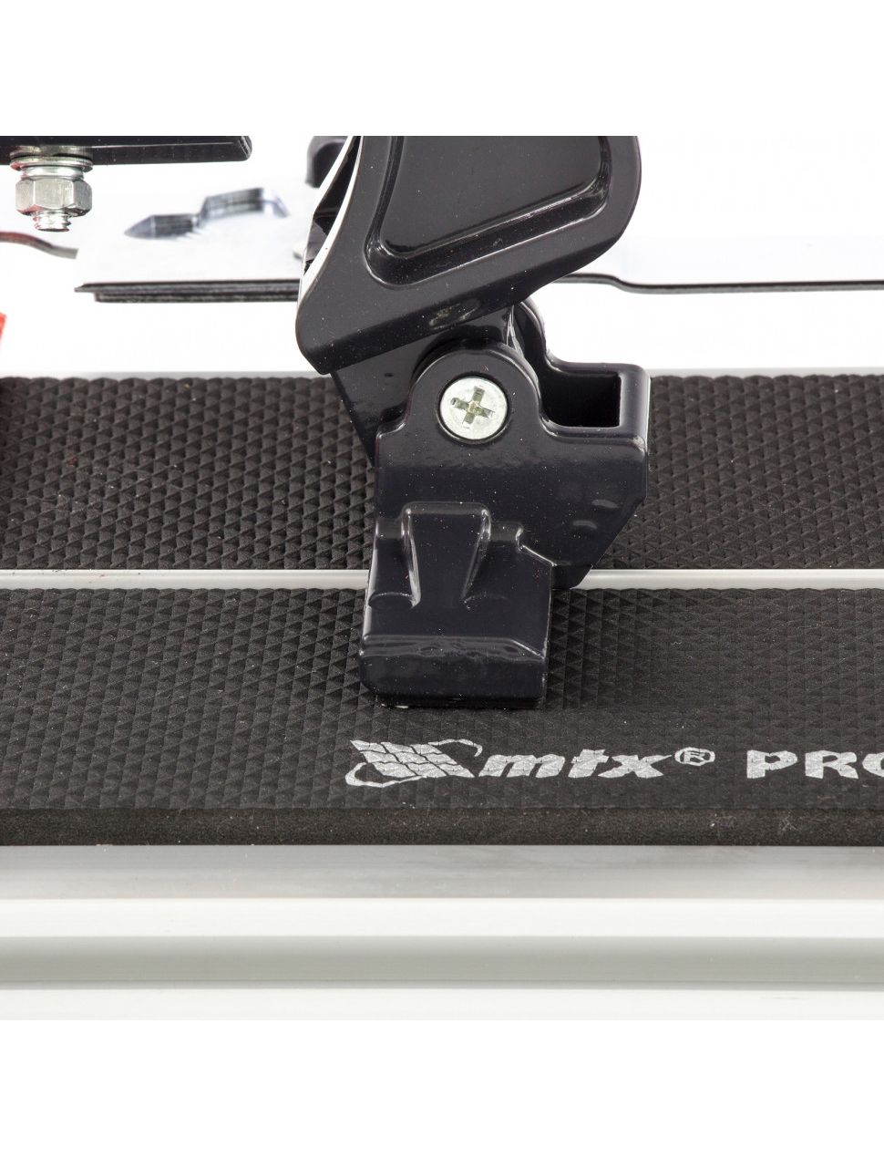 Рельсовый плиткорез 500 мм MTX PROFESSIONAL 87687 - это усовершенствованный вид приспособления для возможности выполнения легкой и точной резки кафельной плитки длиной до 500 мм. Инструмент оснащен всего одним направляющим рельсом и несущей кареткой, которая прочно закреплена на этом рельсе с двух сторон и перемещается за счет шарикоподшипникового механизма.