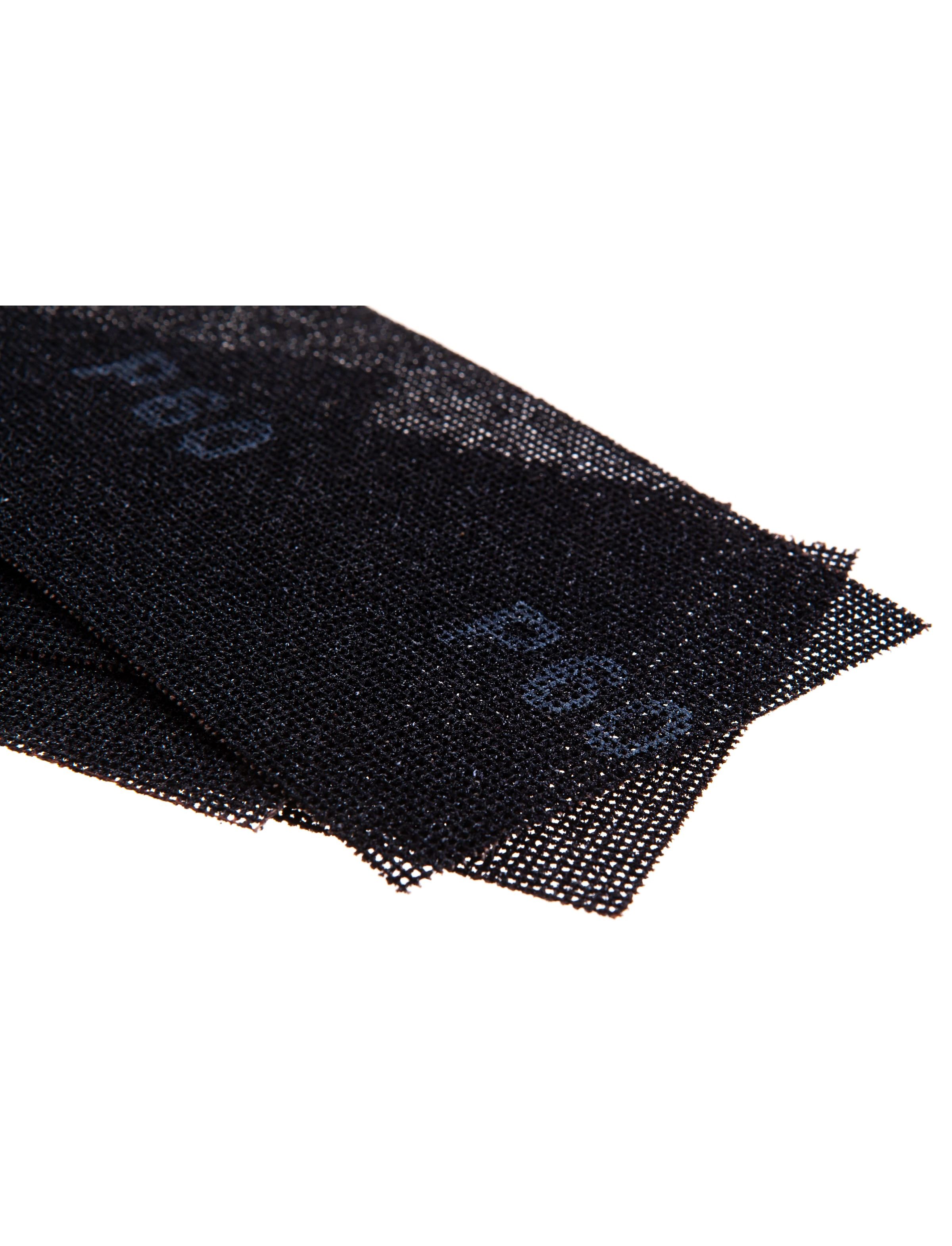 Абразивная сетка Сибртех 751207, 115 x 280 мм, с зернистостью P 60, 5 шт. в упаковке, применяется для черновой обработки шпаклеванной поверхности или мягкой древесины, подходит также для шлифовки металлических поверхностей. Крупнозернистый абразив P 60 эффективно снимает толстый слой материала, лак и краску, а также удаляет ржавчину и заусенцы. Сетку устанавливают на ручные приспособления для шлифования — бруски и сеткодержатели. Благодаря основе из прочного стекловолокна она выдерживает многократное применение.