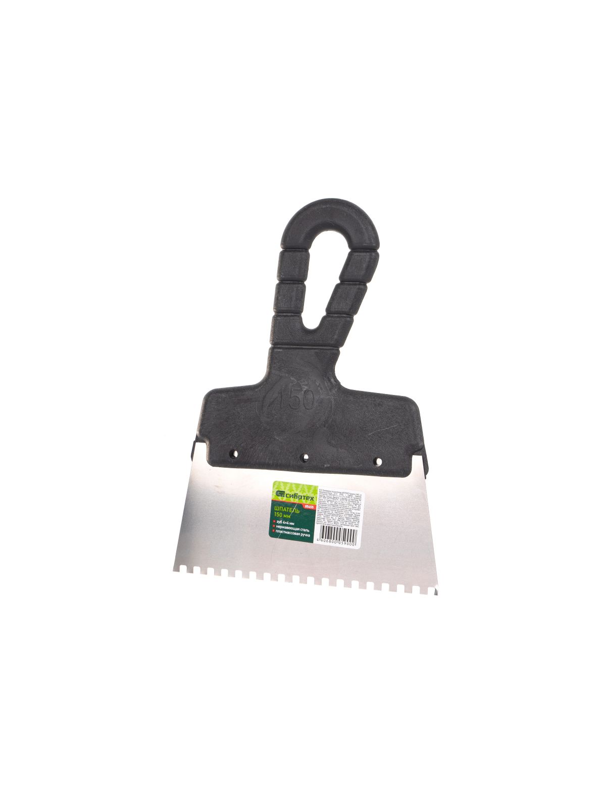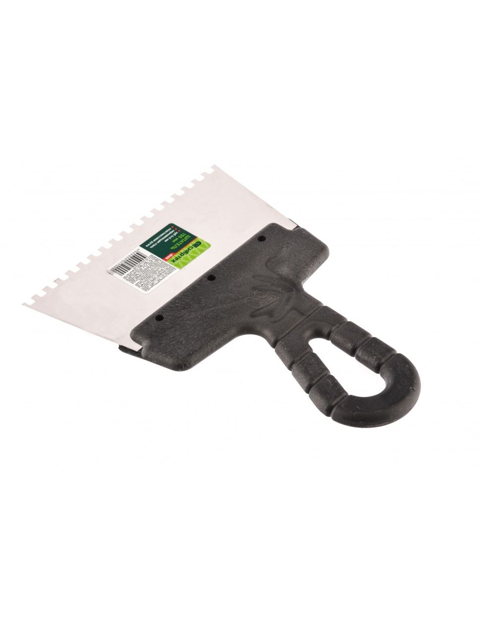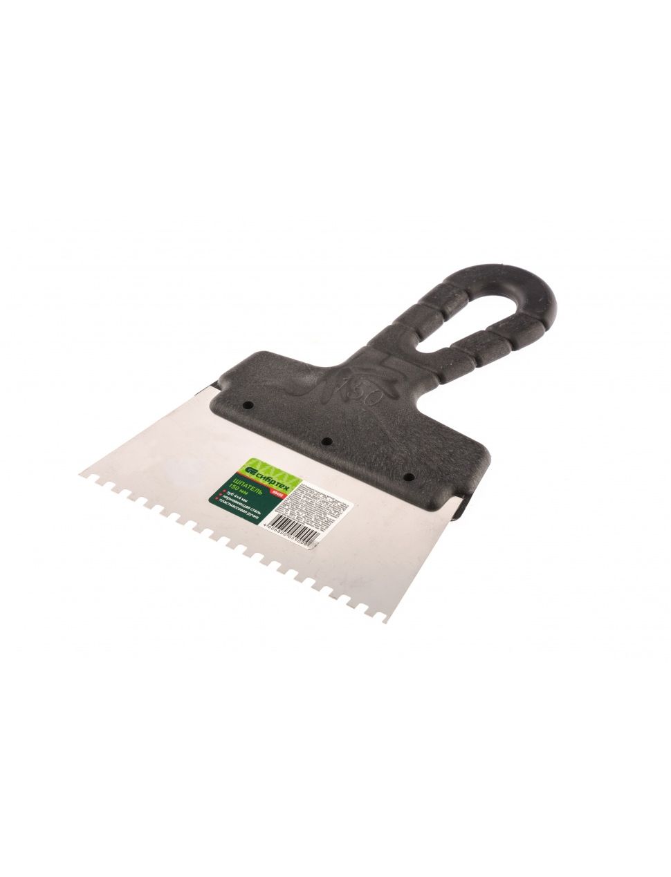 Шпатель из нержавеющей стали 150 мм зуб 4 х 4 мм пластмассовая ручка СИБРТЕХ 85455