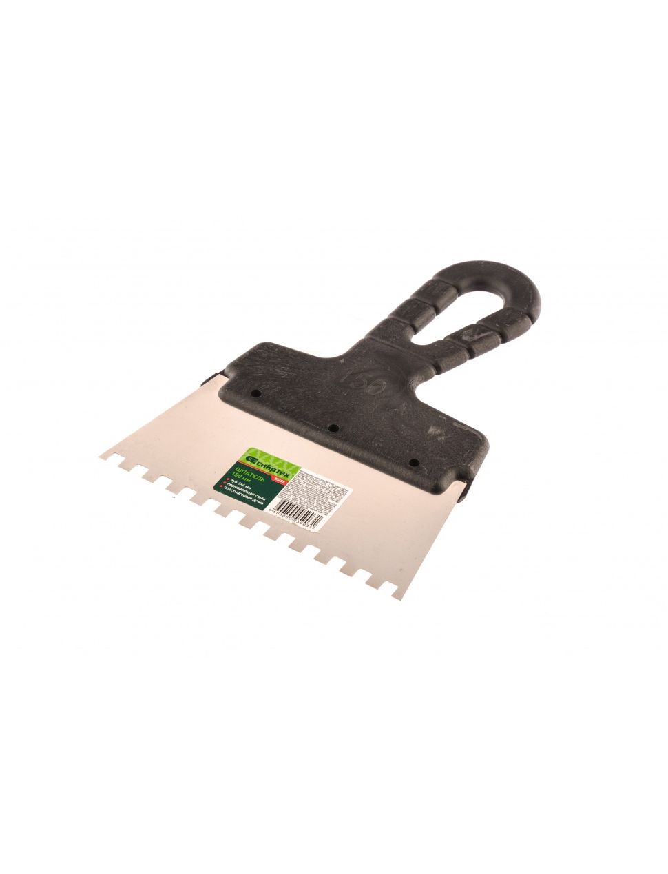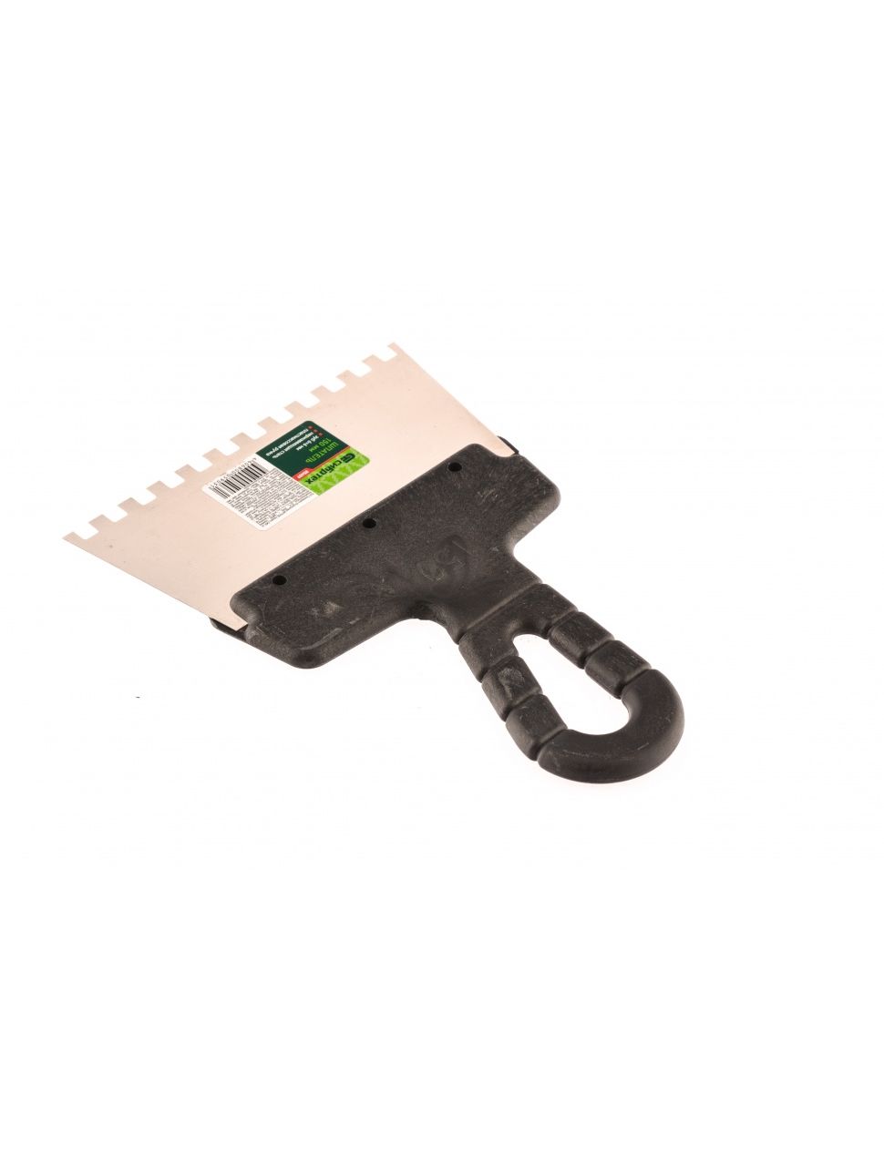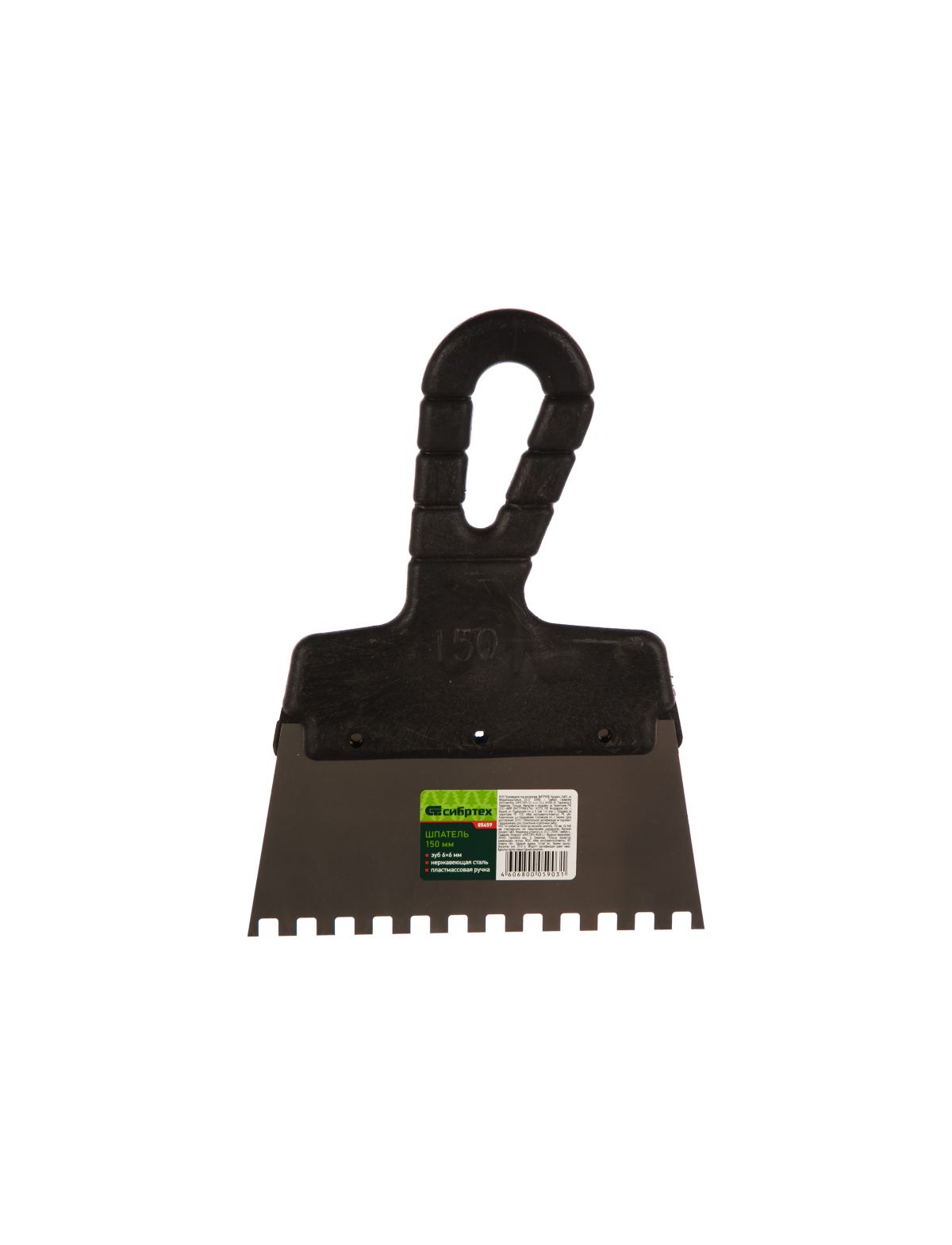 Шпатель из нержавеющей стали 150 мм зуб 6 х 6 мм пластмассовая ручка СИБРТЕХ 85459