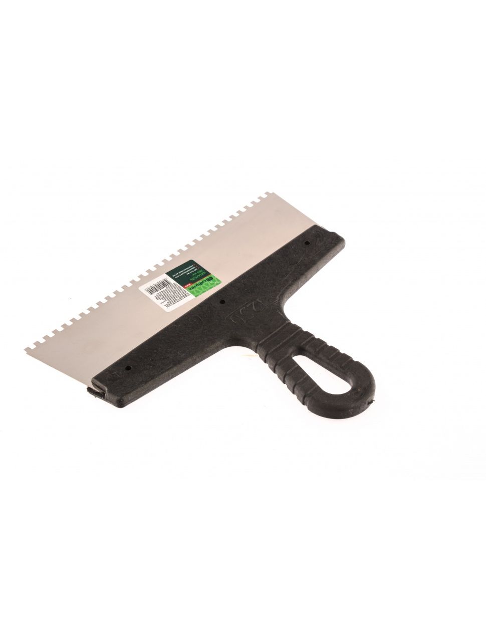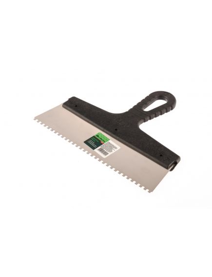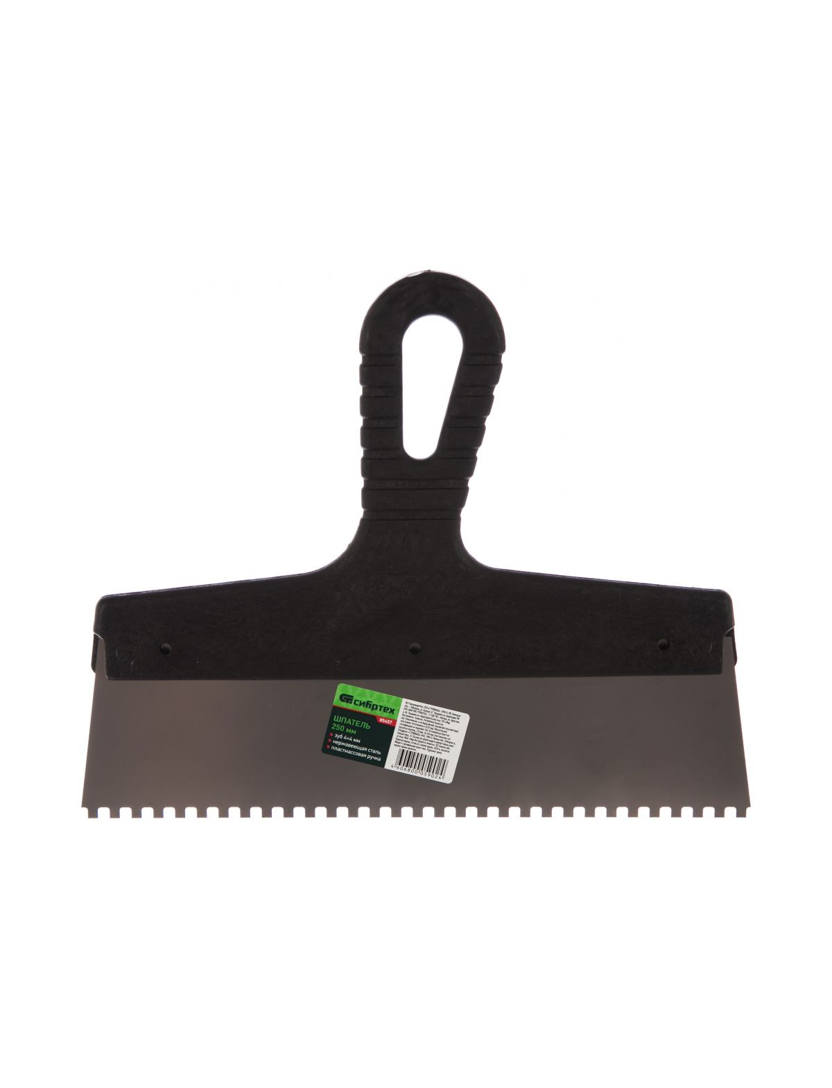 Шпатель из нержавеющей стали 250 мм зуб 4 x 4 мм пластмассовая ручка СИБРТЕХ 85457