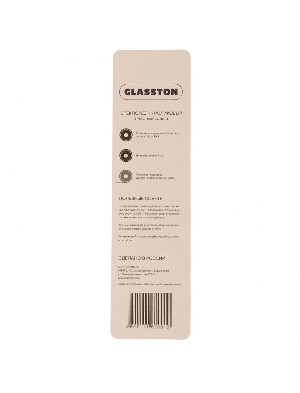 Стеклорез 1-роликовый с пластмассовой ручкой РОССИЯ 87210