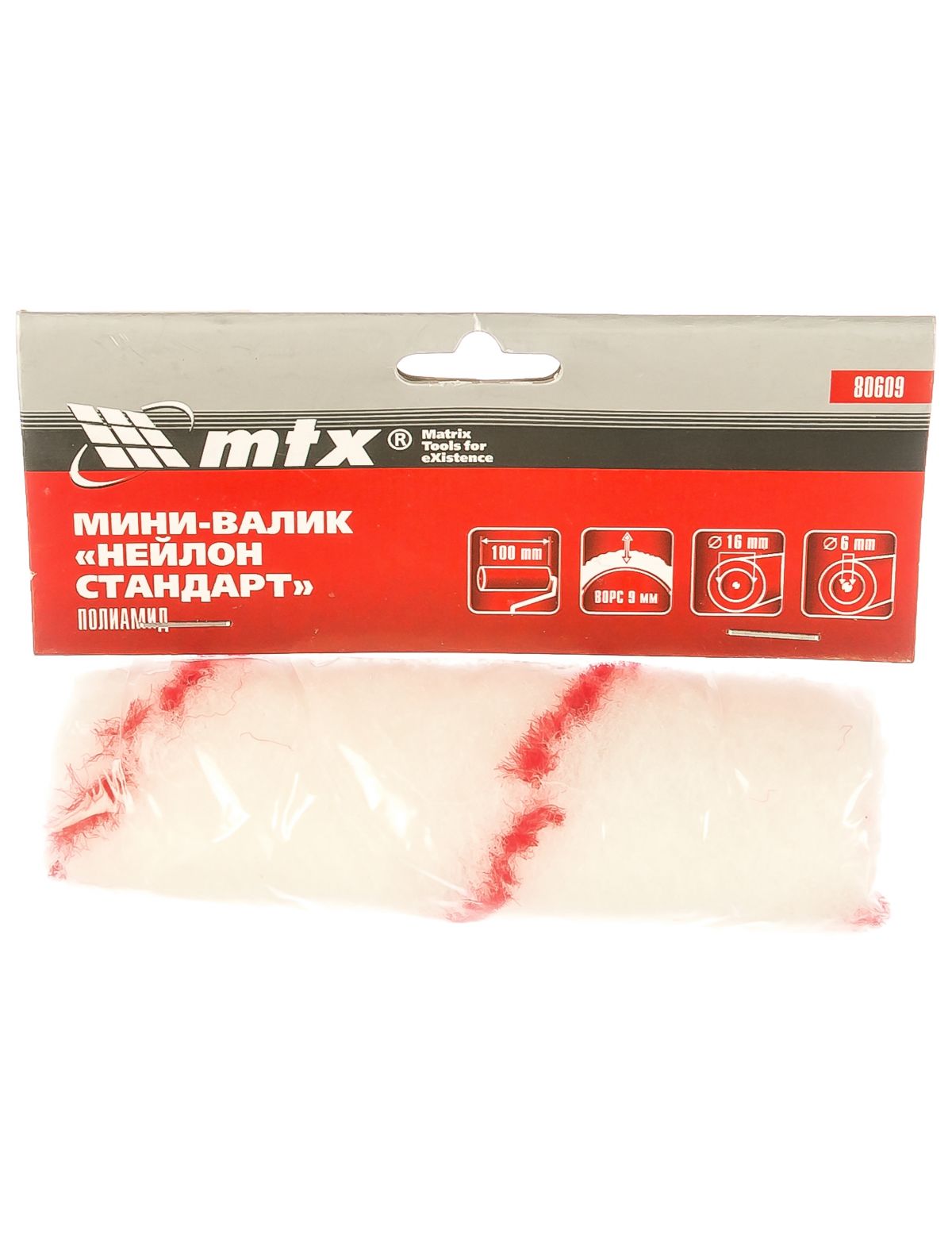 Мини-валик сменный "Нейлон Стандарт" 100 мм D 16 мм D ручки 6 мм MTX 80609