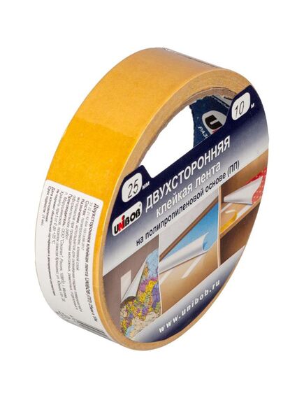 Двусторонняя клейкая лента на полипропиленовой основе UNIBOB 25ммх10м 872523