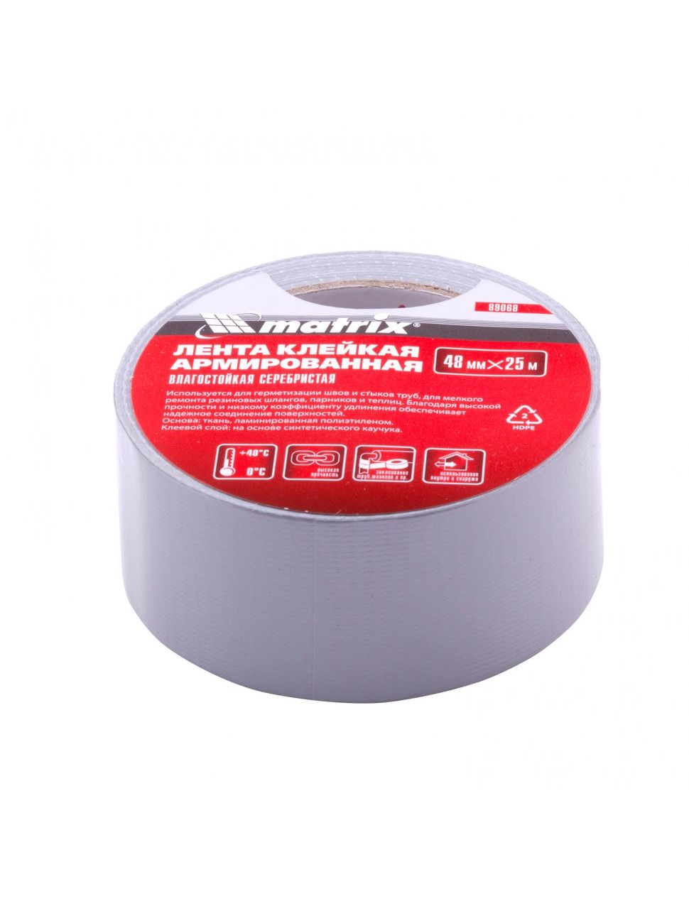 Лента армированная влагостойкая 48 мм х 25 м серебристая MATRIX 89068