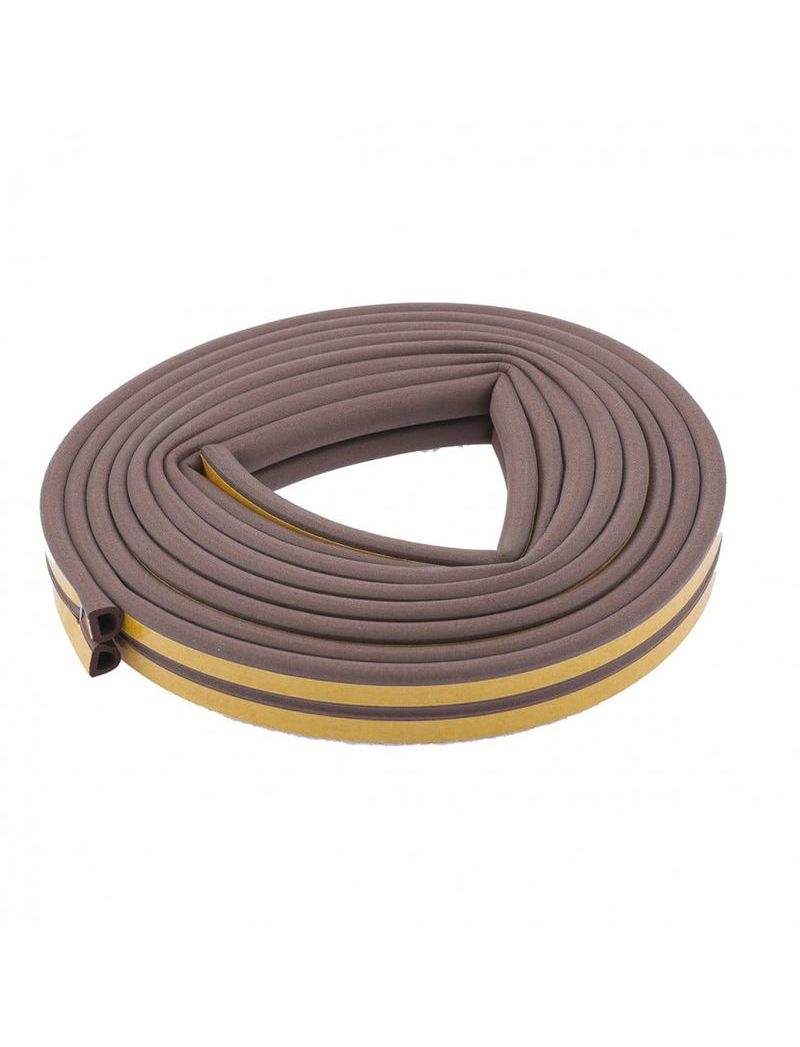 Универсальный уплотнитель коричневого цвета из вспененной резины EPDM, с уже нанесенным клеящим составом. Предназначен для уплотнения зазоров 3-7 мм в рамах окон и дверей, с целью предотвращения подсосов воздуха, пыли и защиты от шума. Образующаяся воздушная камера обеспечивает дополнительную шумо- и теплоизоляцию. Клеящий слой защищен от высыхания и смазывания бумажной лентой. При удалении не повреждает окрашенную поверхность. Хорошая адгезия клеящего слоя. Профиль "D".