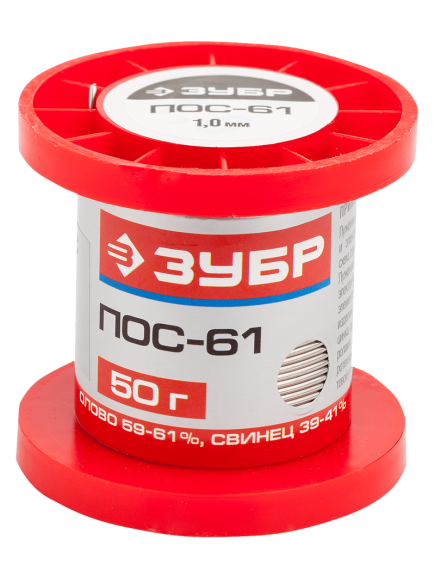 Припой ПОС 61 1,0 мм 50 г ЗУБР 55450-050-10