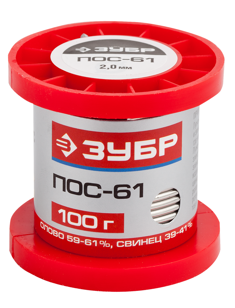 Припой ПОС 61 2,0 мм 100 г ЗУБР 55450-100-20