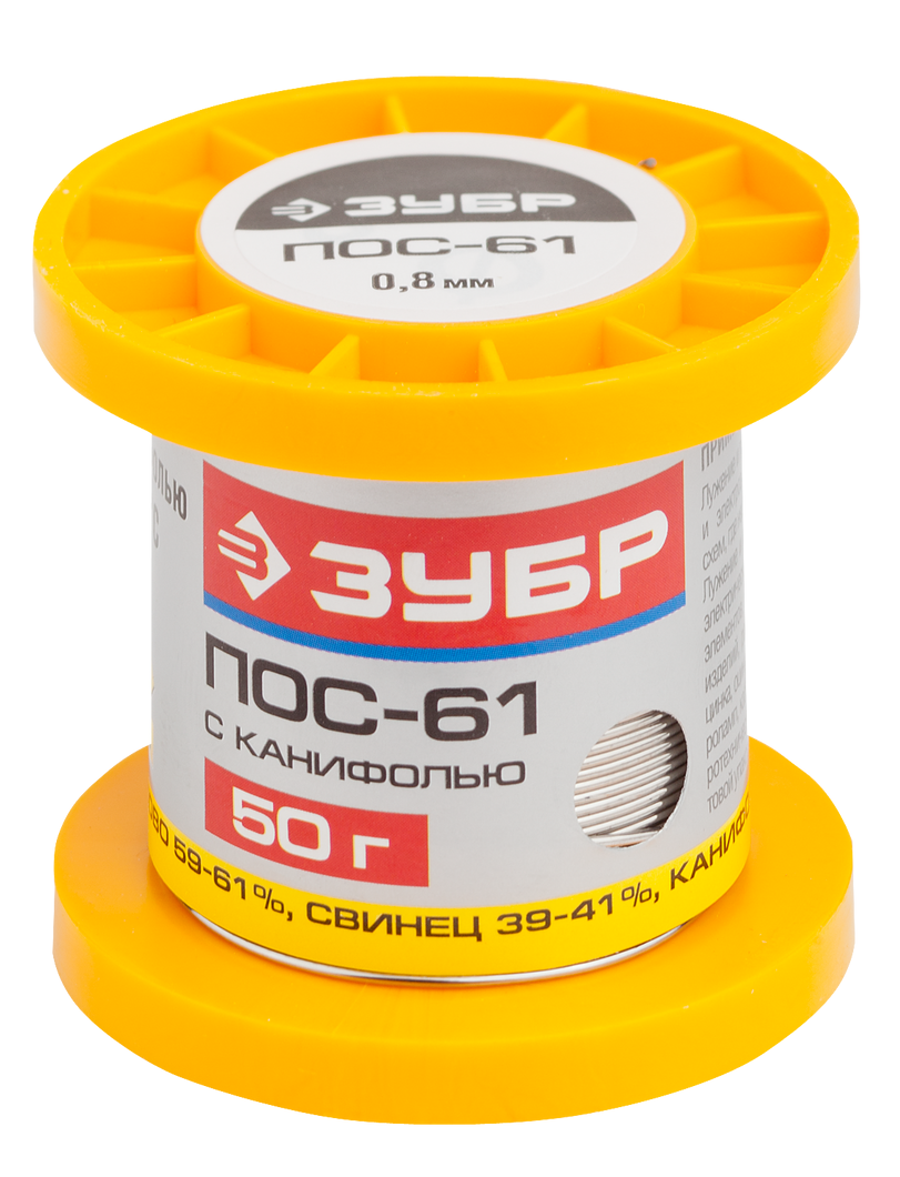 Припой с канифолью ПОС 61 0,8 мм 50 г ЗУБР 55450-050-08C