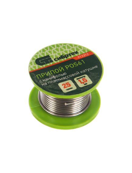 Припой с канифолью ПОС 61 1,5 мм 25 г на пластмассовой катушке СИБРТЕХ 913372