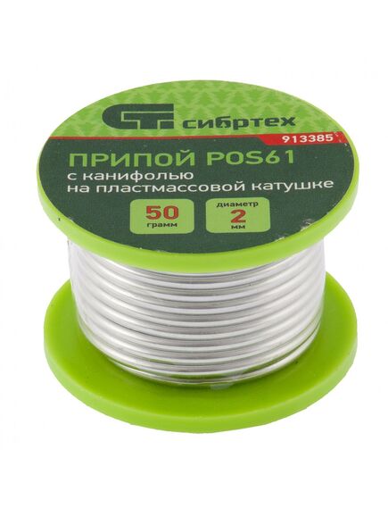 Припой с канифолью ПОС 61 2,0 мм 50 г на пластмассовой катушке СИБРТЕХ 913385