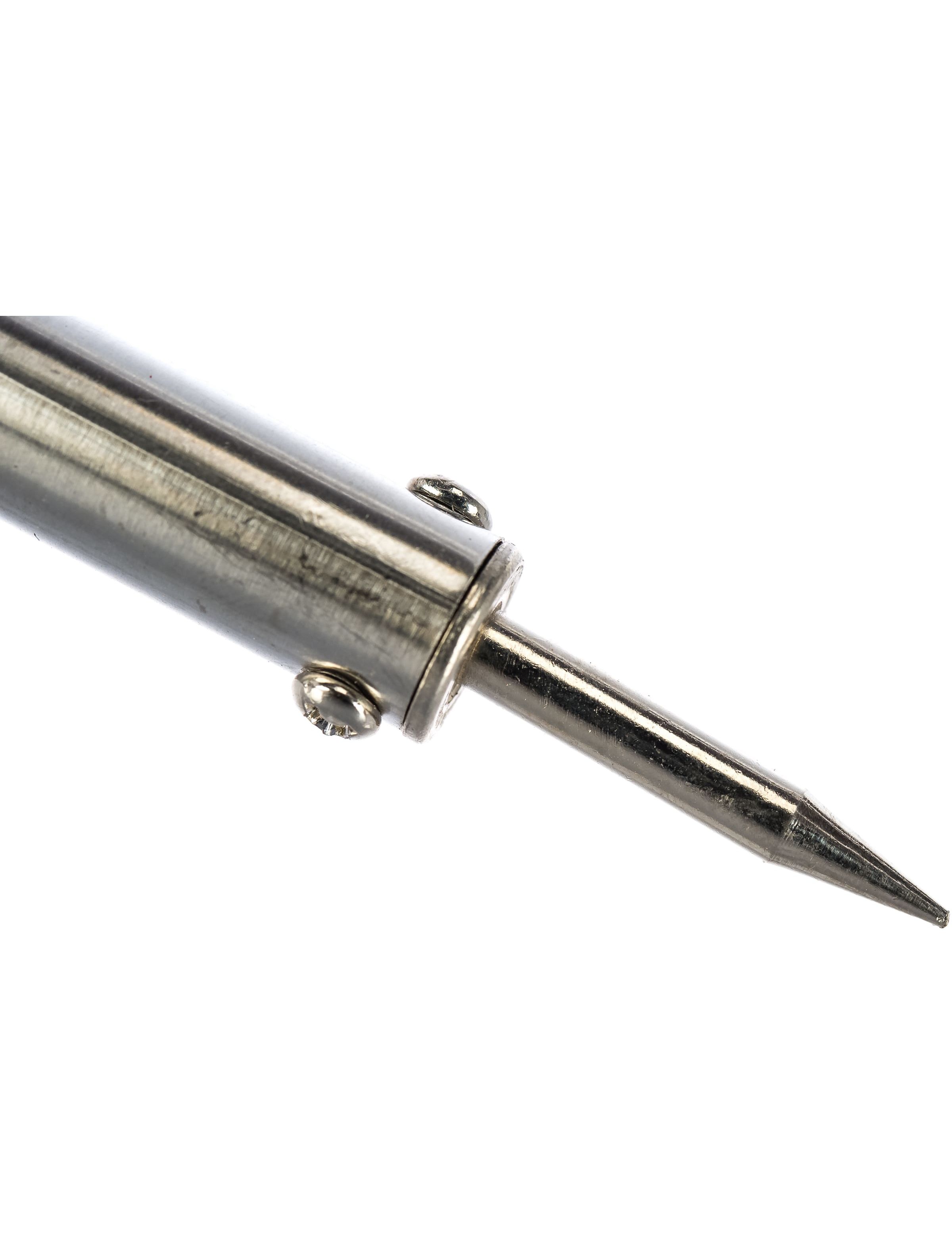 Паяльник Sparta 913103, 60 Вт, 220 В, с ручкой из дерева, используется для пайки электропроводки, микрочипов, электрических схем и транзисторов. Нагревательным элементом является нихромовая спираль, что уменьшает вероятность поломки прибора в результате падения или удара. Конусовидный наконечник позволяет успешно решать поставленные задачи. Жало легко очищается, а в случае выхода из строя его легко можно заменить. Защитное покрытие улучшает прилипание припоя и защищает наконечник от коррозии. Паяльник пригодится для ремонта электроники, бытовой техники, а также обслуживания автомобилей и проведения электромонтажных работ.