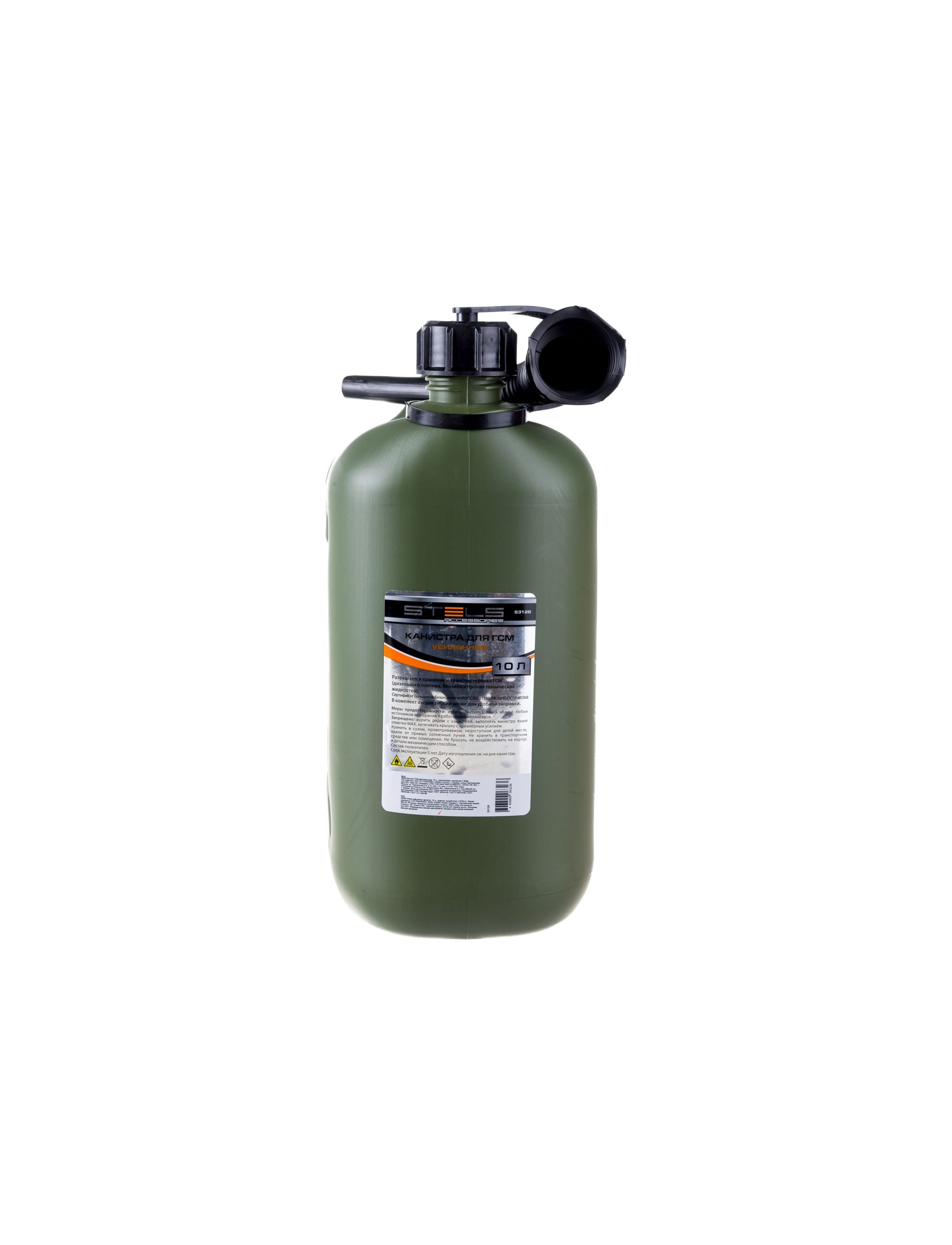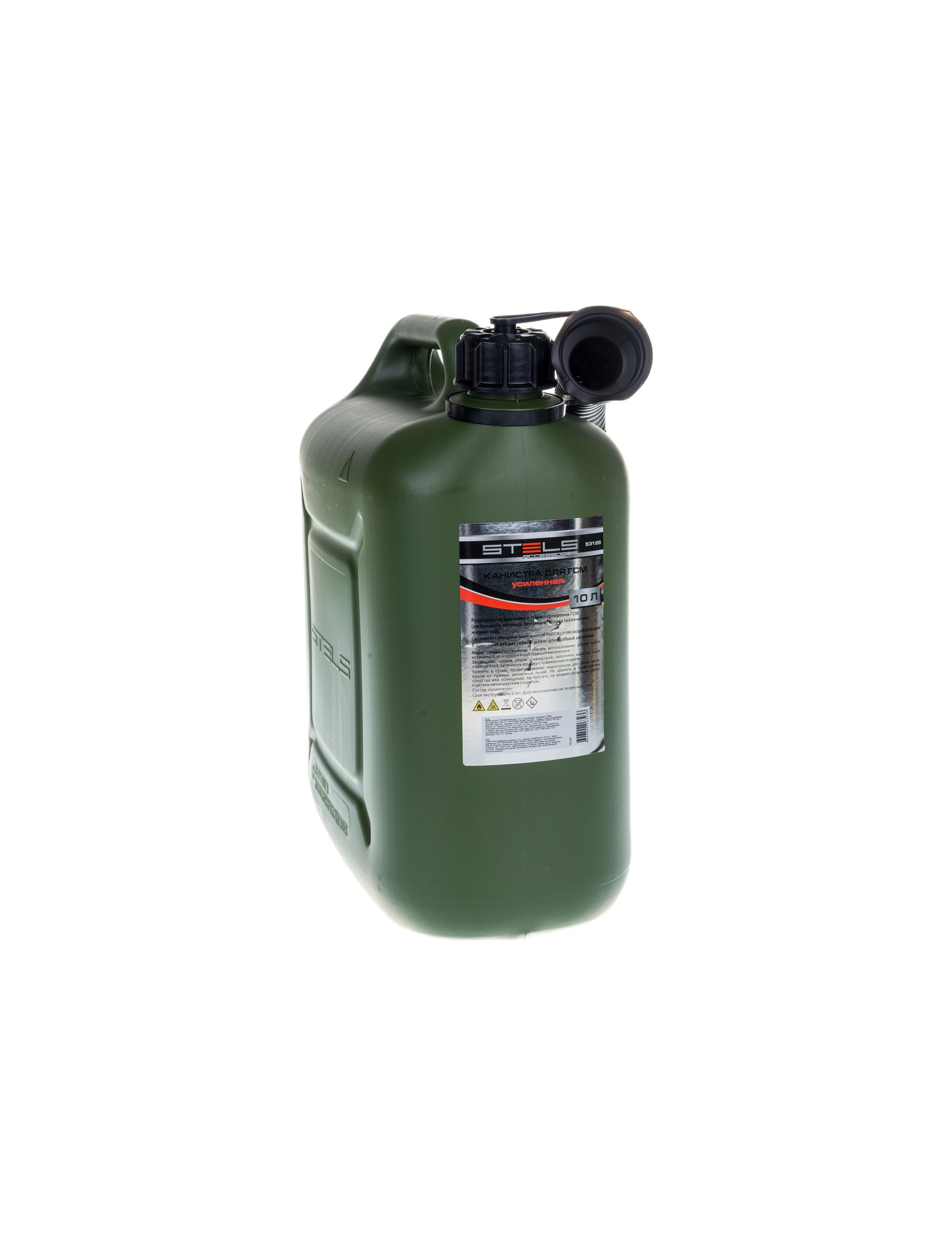 Усиленная вертикальная канистра Stels 53126, 10 л, пластиковая, используется для транспортировки топлива или ГСМ и их хранения в гараже, на даче и т.д. Она будет полезна для автовладельцев на случай отсутствия заправок в дороге. Также канистра пригодится для обслуживания бензотехники: пил, триммеров, газонокосилок и другого оборудования.