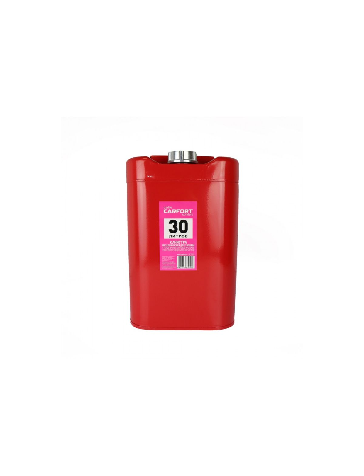 Канистра стальная 30 л вертикальная с крышкой и шлангом внутри Carfort 64245 с антикоррозийным покрытием подходит для хранения жидкостей, топливных смесей и топлива. Имеет горловину с винтовой крышкой и перепускным клапаном. Изготовлена из стали холодного проката. Внешняя поверхность оцинкована и окрашена. Внутри нанесено антикоррозийное покрытие, которое препятствует образованию ржавчины. Боковые поверхности имеют ребра жесткости, что дополнительно защищает канистру от механических повреждений.