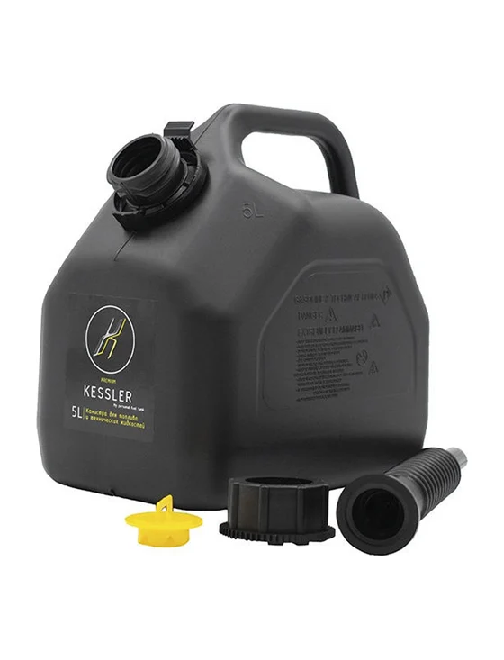 Канистра ГСМ Black Kessler черная с желтой крышкой 5 л Oktan KGA1-02-06 - универсальная канистра премиум класса для ГСМ и технических жидкостей в черном цвете корпуса 5 литров. Бензостойкий уплотнитель, крепкая уздечка, усиленная горловина, усиленные аккуратные швы. Наливной шланг с системой "Антибульк" расположен внутри канистры. Крышка с защитой от случайного открытия детьми. Толщина стенок 1,4 мм. Размер 23,5х16х24 см.