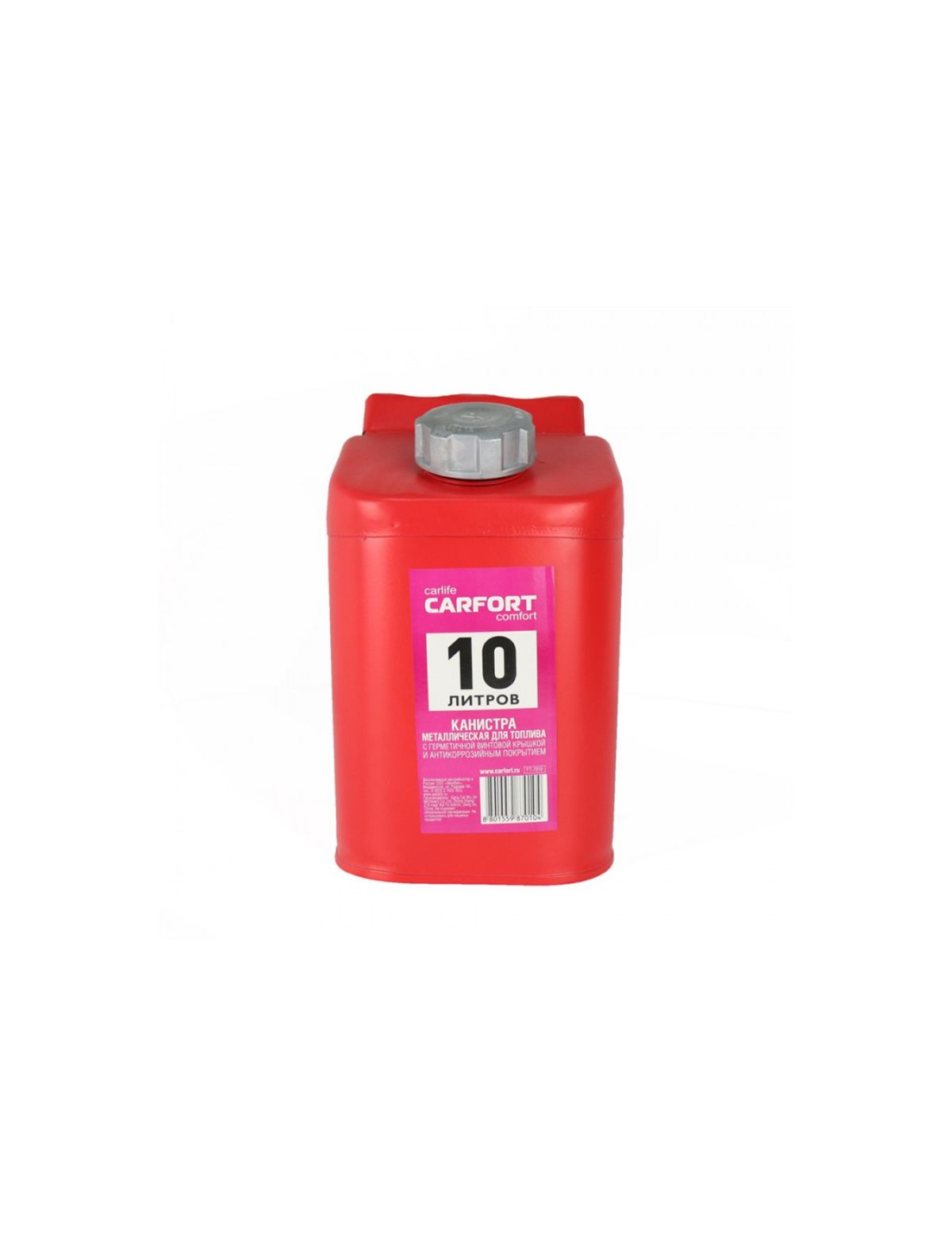 Канистра стальная 10 л вертикальная с крышкой и шлангом внутри Carfort 55624 с антикоррозийным покрытием подходит для хранения жидкостей, топливных смесей и топлива. Имеет горловину с винтовой крышкой и перепускным клапаном. Изготовлена из стали холодного проката. Внешняя поверхность оцинкована и окрашена. Внутри нанесено антикоррозийное покрытие, которое препятствует образованию ржавчины. Боковые поверхности имеют ребра жесткости, что дополнительно защищает канистру от механических повреждений.