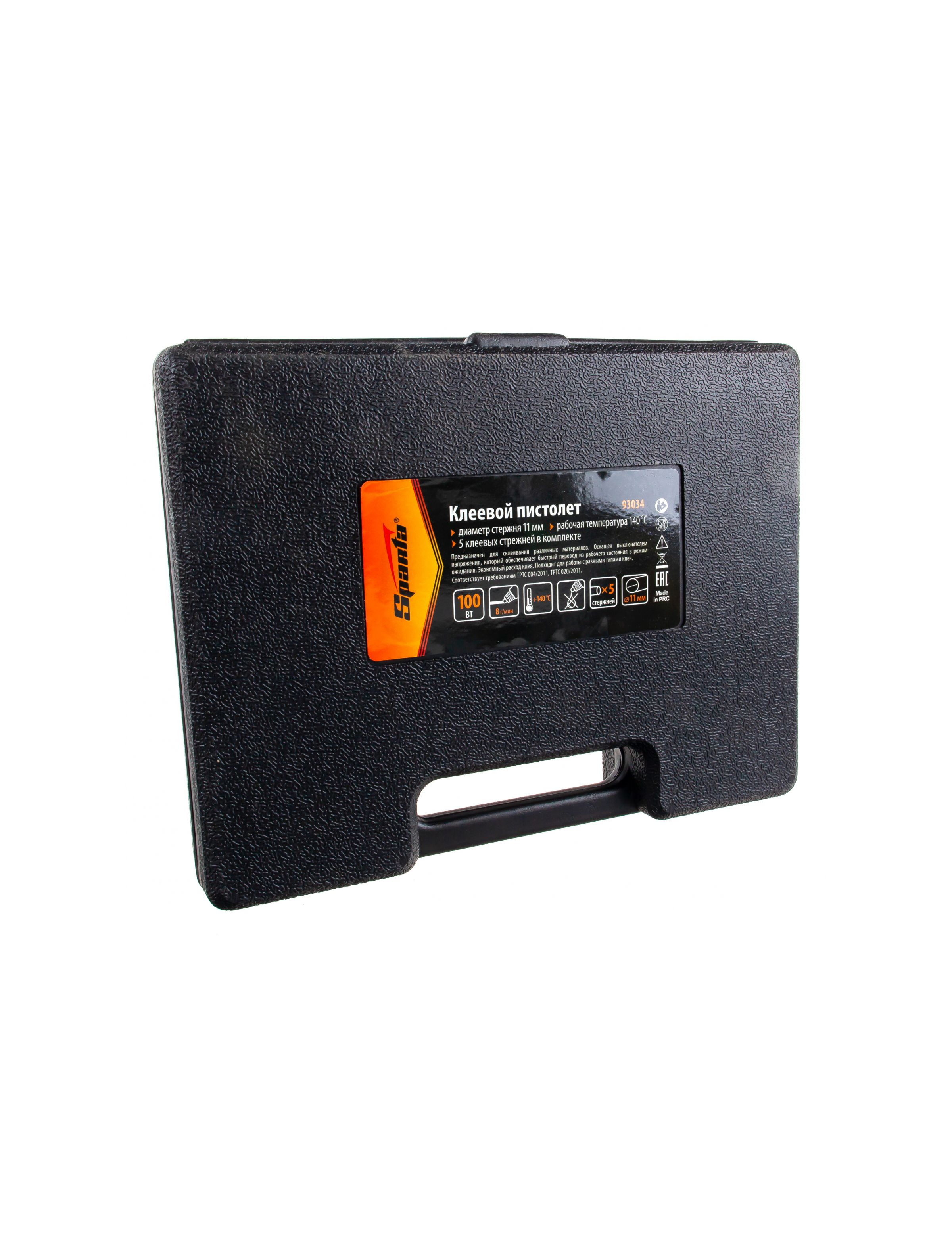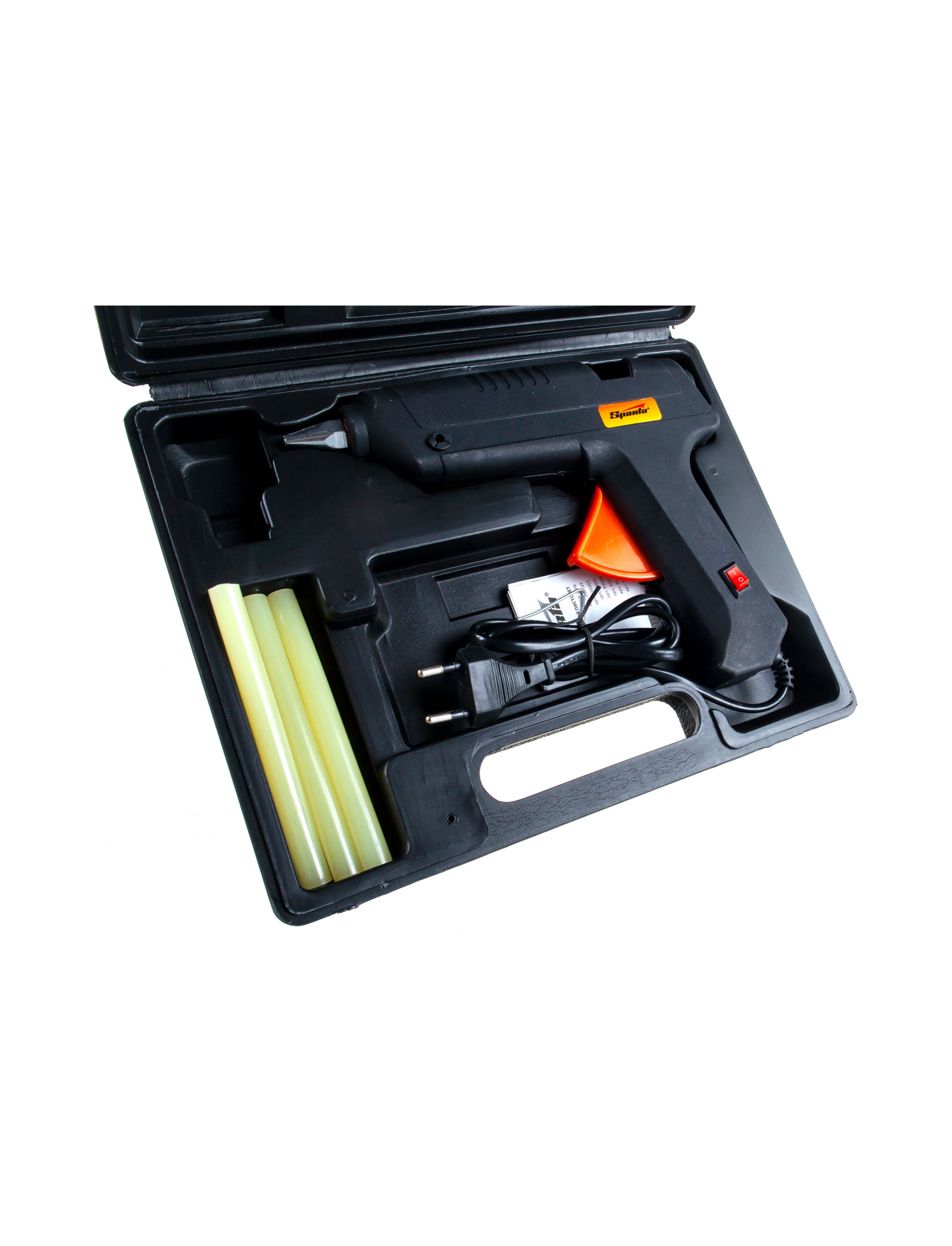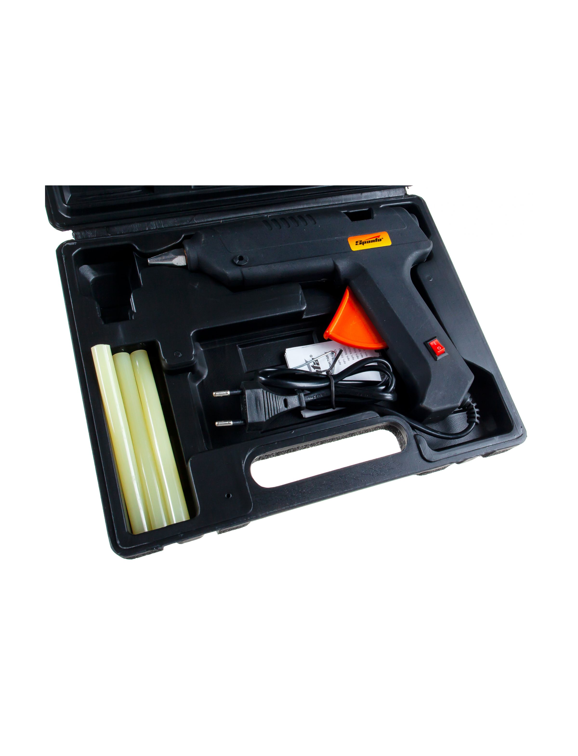 Клеевой пистолет с выключателем 11 мм в кейсе 100 Вт 8 г/мин SPARTA 93034