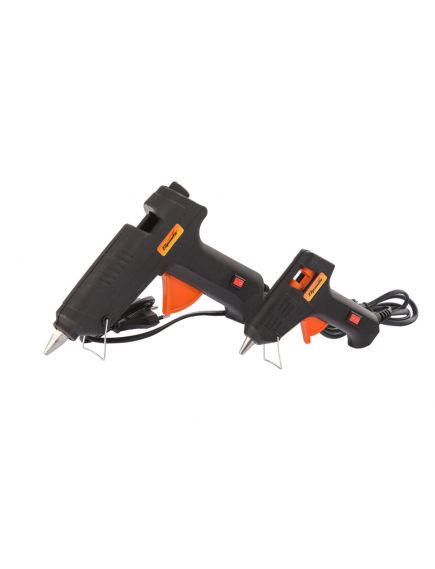 Набор клеевых пистолетов с выключателями Sparta 93038, 7/11 мм, 20/100 Вт, 3/8 г./мин., в кейсе, пригодится при проведении несложных бытовых работ: склеивания бумаги, дерева, пластика и других материалов. Набор включает в себя 2 пистолета производительностью 3 и 8 г/мин. Он станет незаменимым помощником для частных мастеров, которые занимаются мелким ремонтом, упаковкой, сборкой различных моделей и рукоделием. Время нагрева до максимальной температуры не превышает 5,5 минут.