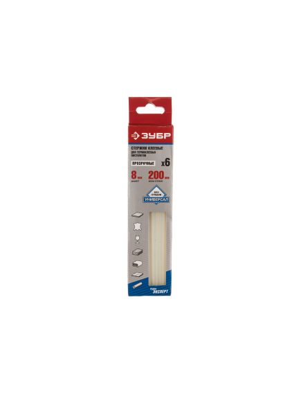 Стержни клеевые прозрачные 8 х 200 мм в упаковке 6 шт ЗУБР 06855-08-1
