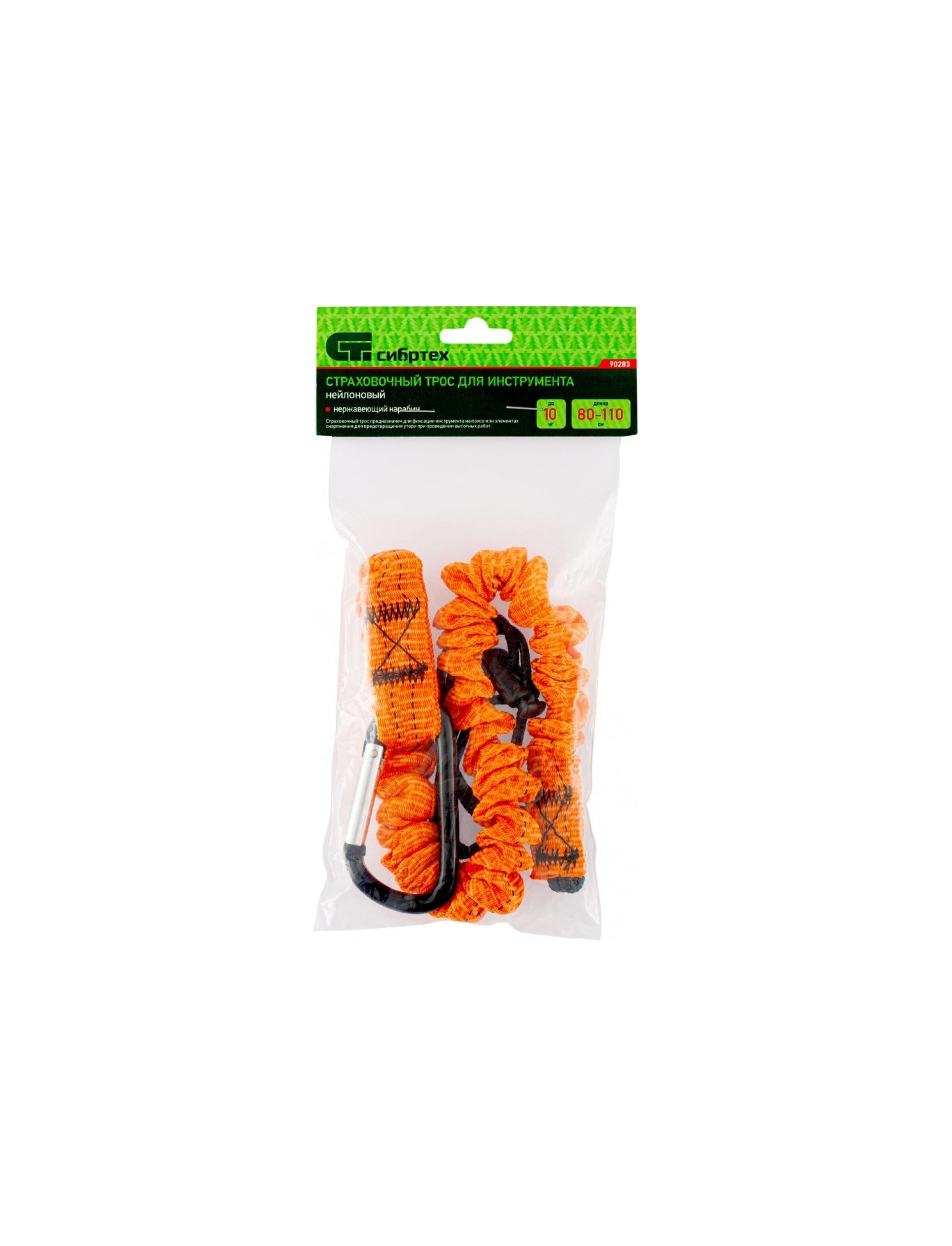 Нейлоновый подвес для инструмента СИБРТЕХ, максимальный вес 10 кг, 90283 - страховочный трос, предназначенный для фиксации инструмента на поясе или элементах снаряжения для предотвращения утери при проведении высотных работ. Выполнен из прочного нейлонового шнура, который может растягиваться до 110 см. Для надежной фиксации предусмотрен стальной нержавеющий карабин. Изделие отличается яркой оранжевой расцветкой.