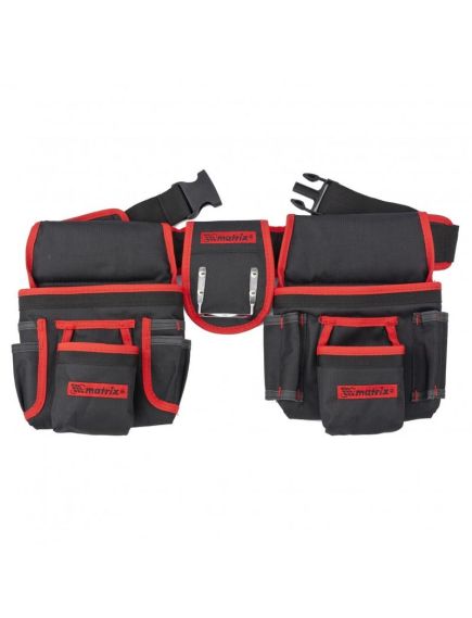 Сумка-пояс двойная MATRIX 90240 предназначена для хранения и транспортировки инструментов. На ремне располагаются две сумки с карманами, а по середине - держатель для молотка. Таким образом, обеспечивается удобный доступ ко всем необходимым приспособлениям в нужное время. Очень полезна в условиях, когда инструмент всегда должен находиться под рукой, например, при монтажных работах. Сумка выполнена из синтетического материала и содержит 20 карманов различного размера, что позволяет хранить в ней большое количество инструментов. Ремень сумки надежно застегивается с помощью пластмассового замка.