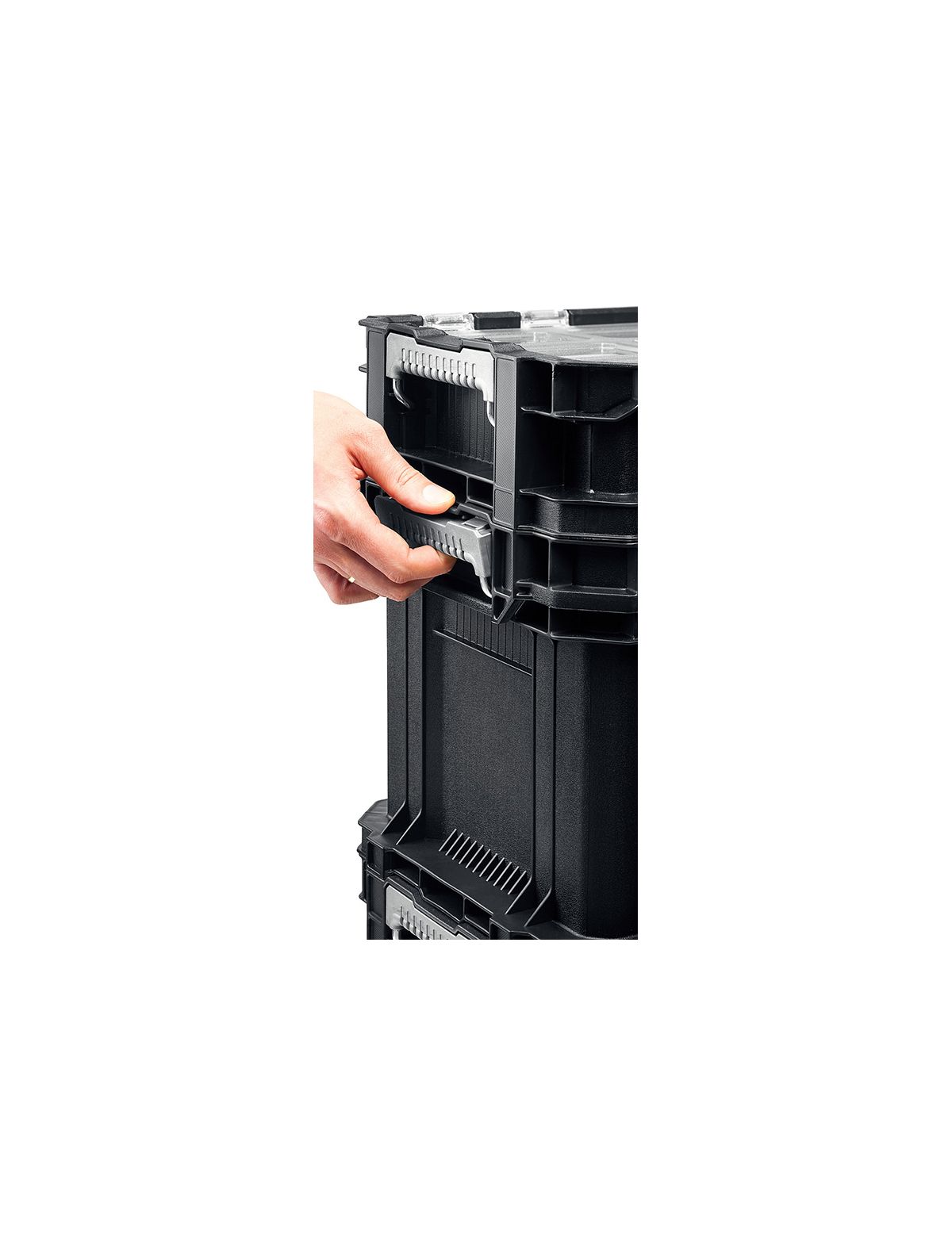 Набор ящиков на колесах Keter SMART ROLLING 22 38390-22 предназначен для хранения и транспортировки различных инструментов и рабочих принадлежностей. Данная модель оснащена специальными боковыми защелками для надежной фиксации блоков между собой. Это позволяет создать единую надежную конструкцию и перевозить большие объемы инструмента. Телескопическая ручка придает удобство при перевозке и снижает нагрузку на спину.