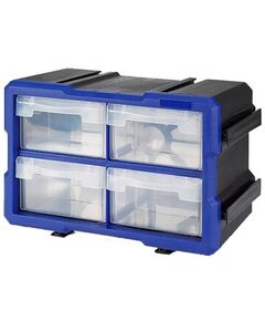 Органайзер пластиковый 4 выдвижных ящичка • Подходит для хранения мелких деталей и предметов • Ящички из полупрозрачного полипропилена 4шт • Сверху, снизу и сбоку пазы для крепления дополнительных секций • Удобный, прочный и легкий в переноске • Размер : 295х195х160мм