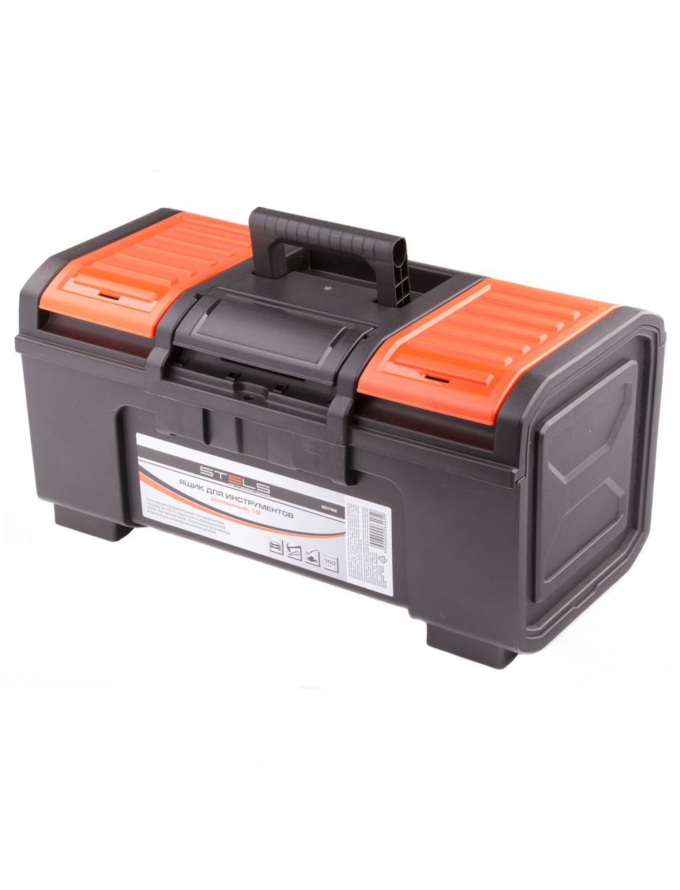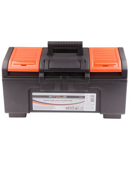 Ящик для инструментов, усиленный 19" STELS 90762 имеет съемный лоток, а так же снаружи крышки предусмотрены дополнительные отделения. Все это обеспечивает удобство разделения различных мелочей по видам. Усиленная конструкция выдерживает вес при переноске 35 кг, что позволяет использовать ящик для транспортировки электроинструмента. Максимальная распределенная нагрузка на крышку 150 кг.