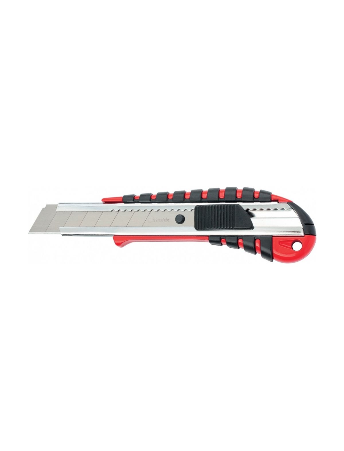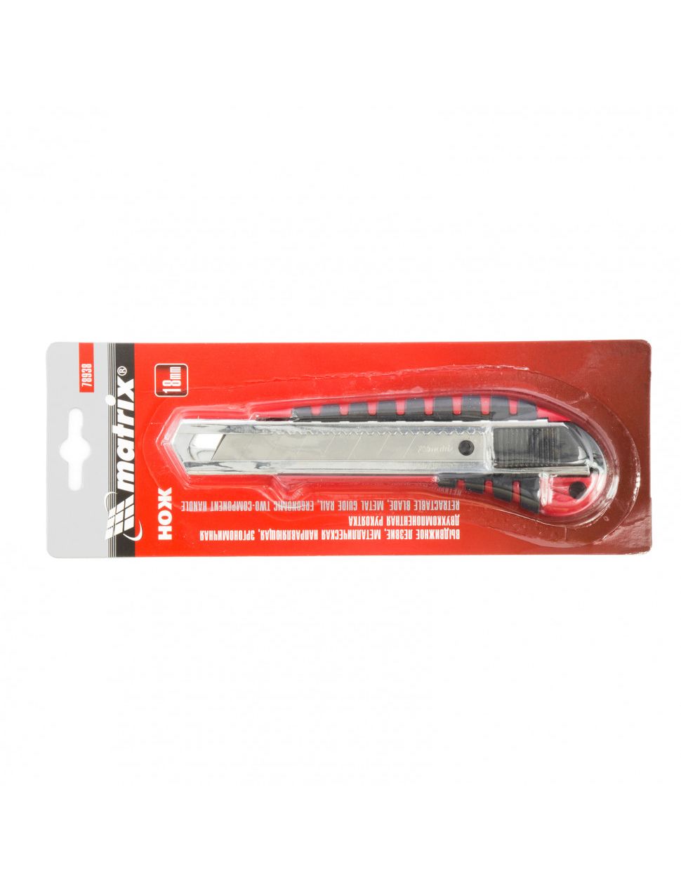 Нож 18 мм выдвижное лезвие металлическая направляющая двухкомпонентная рукоятка MATRIX 78938