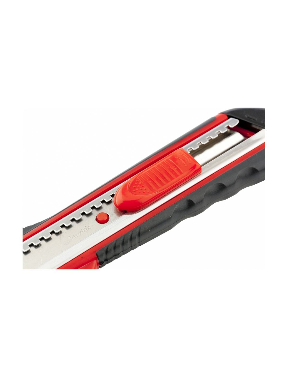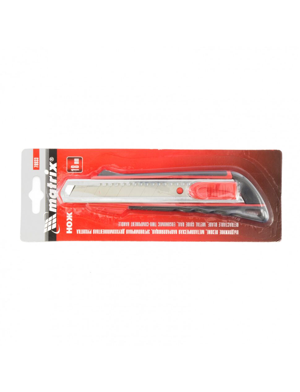 Нож 18 мм выдвижное лезвие металлическая направляющая двухкомпонентная рукоятка MATRIX 78933
