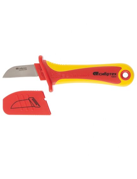 Диэлектрический нож, прямая рабочая кромка полотна СИБРТЕХ 78800 используется при электромонтажных работах. Предназначен для снятия оплетки электрокабелей. Лезвие изготовлено из высокопрочной стали, что обеспечивает долгий срок службы инструмента.