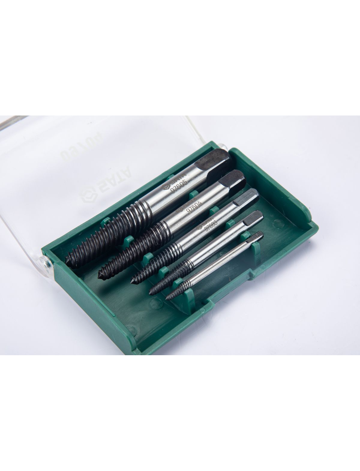 Комплект экстракторов 5 предметов 2-7 мм Sata 09704 используется для быстрого и безопасного извлечения сломанных винтов без повреждения внутренней резьбы отверстия. В комплекте поставляется 5 инструментв, которые подойдут для работы с небольшими винтами.