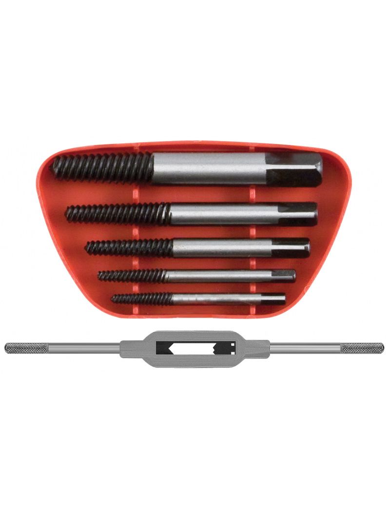 Набор экстракторов с держателем 5 штук FIT 36434 позволяет извлечь шурупы с сорванным шлицем. Комплект поставляется в блистере. Для удобства вращения имеется вороток, выполненный из цинкового сплава. Ручки и зажим изготовлены из инструментальной стали.