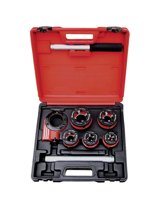 Набор клуппов 8 предметов MATRIX 77332 используется для ручной нарезки резьбы на металлических трубах. Все инструменты изготовлены из прочных и износостойких материалов. Набор укомплектован в пластиковый кейс, где каждый предмет на своем месте. Плашкодержатель с трещоткой подходит ко всем клуппам, он способствует лучшей передачи усилия, прикладываемого при работе.