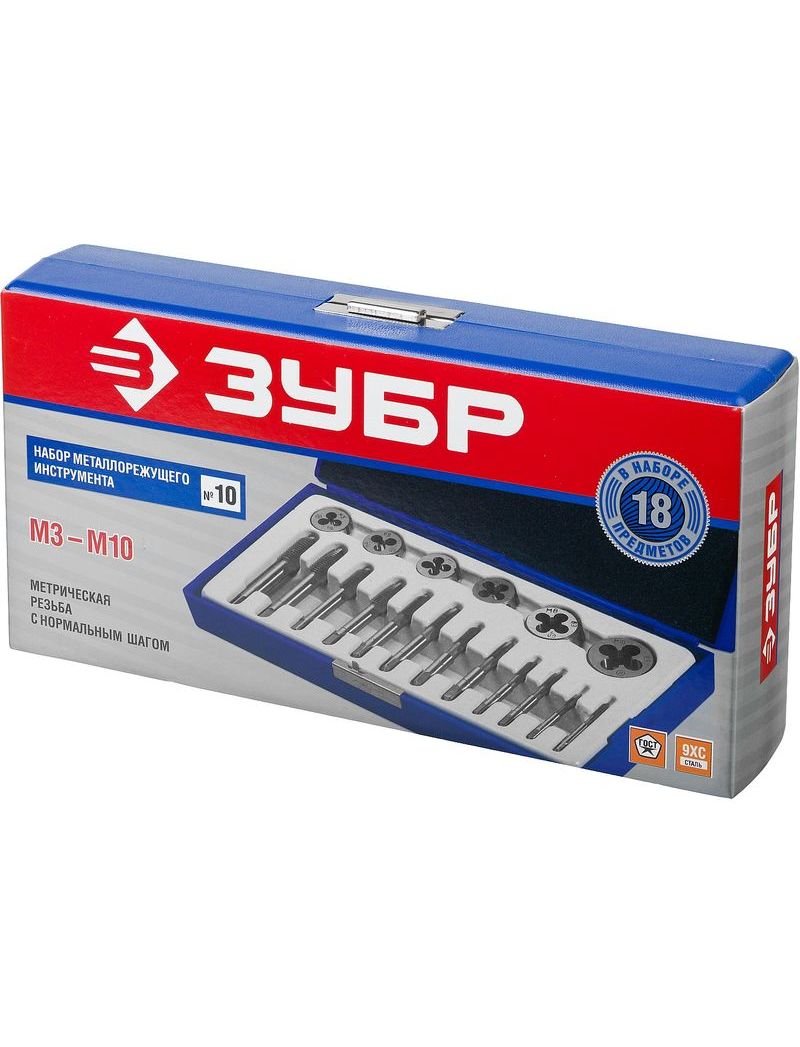 Набор метчиков и плашек 18 предметов 9ХС ЗУБР 28120-Н18