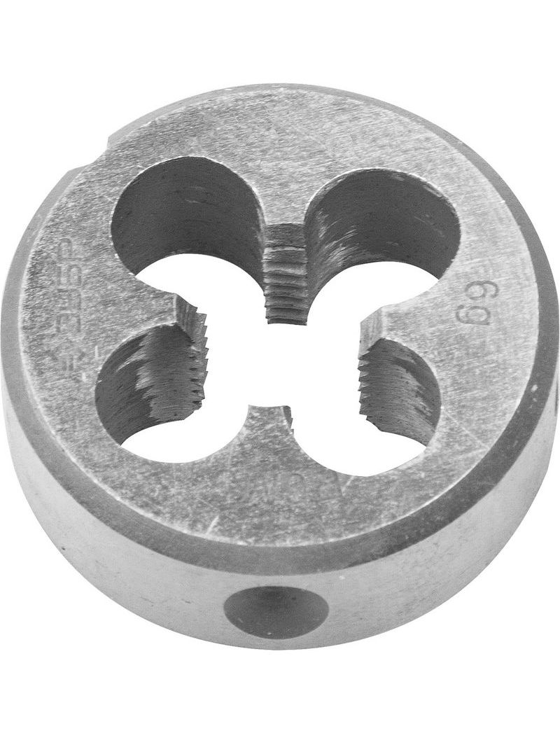 Круглая машинно-ручная плашка для нарезания метрической резьбы, мелкий шаг, М12x1.5 Зубр ПРОФЕССИОНАЛ 4-28023-12-1.5_z01 представляет собой специализированное приспособление для нарезания/калибрования наружной метрической резьбы на металлических деталях и заготовках.