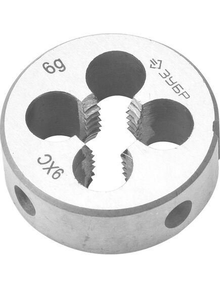 Круглая ручная плашка для нарезания метрической резьбы, мелкий шаг, Зубр "МАСТЕР" М5x0,5 4-28022-05-0.5 выполнена из легированной стали 9ХС. Сплав дополнен хромом, кремнием и углеродом для большей жесткости.