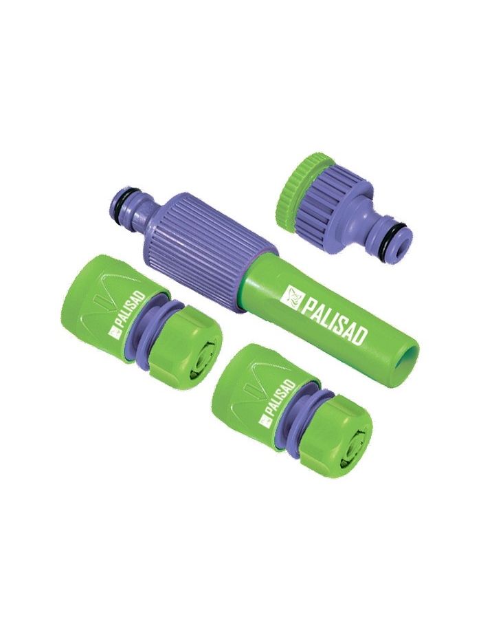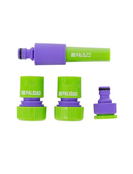 Набор PALISAD 65179 применяется для полива растений при подключении к поливочному шлангу 3/4". Является незаменимым помощником в саду и на даче. Все элементы набора выполнены из высококачественного ударопрочного АВS-пластика, устойчивого к воздействию влаги. Распределитель оснащен регулируемой форсункой, имеющей 3 режима полива: жесткая струя, распыление типа «туман», конусное распыление. Это позволяет выбрать наиболее подходящий тип распыления для различных растений. Быстросъемный соединитель 3/4" позволяет быстро подсоединять или отсоединять шланг через адаптер-переходник. В комплект также входит быстросъемный соединитель 3/4" с функцией "аквастоп", которая блокирует поток воды при отсоединении поливочного наконечника, предотвращая вытекание воды из шланга.