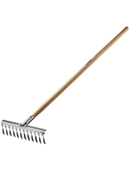 Грабли из нержавеющей стали GRINDA PROLine 12 витых зубцов 39481-12 – незаменимый инвентарь на садовом участке для очистки территории от скошенной травы, опавших листьев и другого мусора. Также применяются для выравнивания и рыхления почвы на грядах и клумбах. Витые зубья отлично удерживают сухой мусор, что увеличивает скорость работы. Рабочая часть изготовлена из нержавеющей стали, она не подвержена коррозии, что позволяет работать во влажной среде.