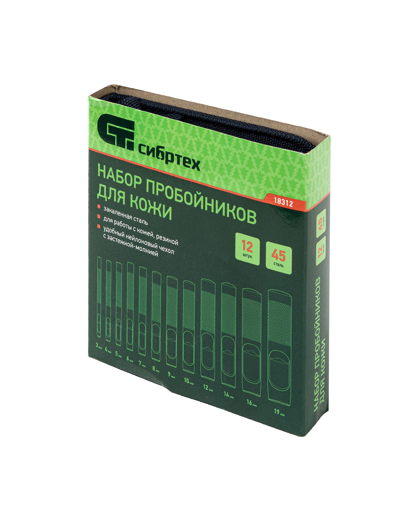 Набор пробойников для кожи СИБРТЕХ 18312 представляет собой комплект высококачественных стальных инструментов с рифленым корпусом, которые служат для выполнения круглых отверстий. Пробойники подходят для мягких листовых материалов. Используются совместно с ударным инструментом (например, молотком). Набор широко распространен для эксплуатации как в бытовых условиях, так и в профессиональной области. Каждый элемент имеет прецизионную заточку рабочих частей для более ровного и качественного реза. Для удобства хранения и переноски комплекта без риска утери компонентов предусмотрен удобный нейлоновый чехол на молнии.