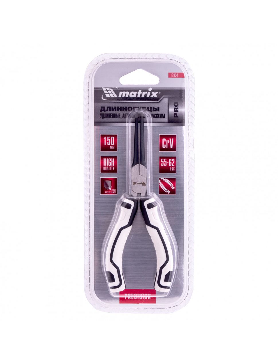 Удлиненные длинногубцы MATRIX Mini PRO 150 мм, авторазжим 17834 - инструмент для удержания небольших по размеру предметов. Рабочая часть изготовлена из Cr-V, что гарантирует высокую прочность и стойкость к коррозии. Удобные рукоятки и авторазжим облегчают работу.